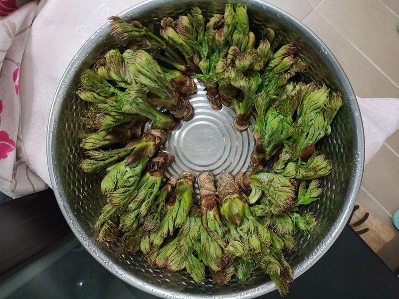 오늘은 정말 좋은 옛 직장 동료 찾아가 참죽 다년생 수십 구루 캐서 농장에 심고 첫 고사리와 두룹을 잘라 욌어요 첫물을 처음 맛 봅니다 자연과 아름다운 친구 감사합니다 행복하세요
