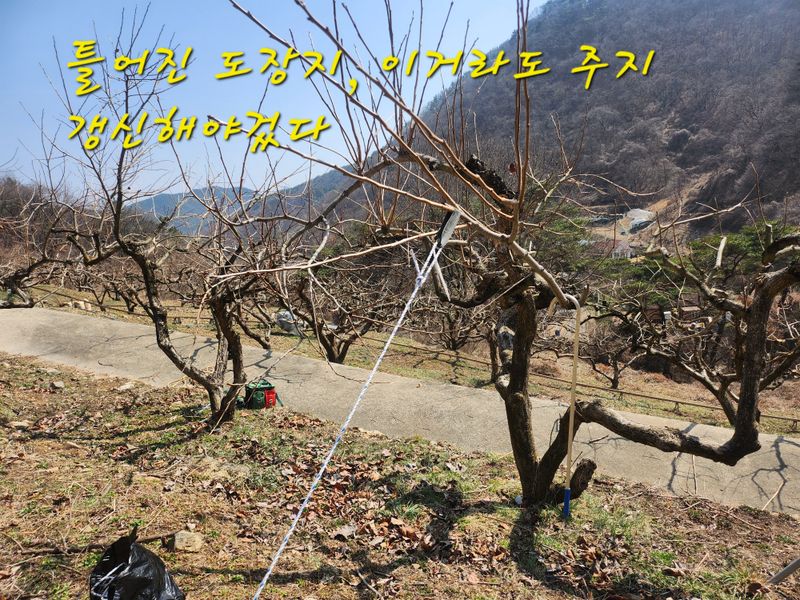 늦은 월동방제 전지작업을 부랴부랴 끝내고 급하게 방제. 다행히 떡잎은 이제 나오려고 막바지...
