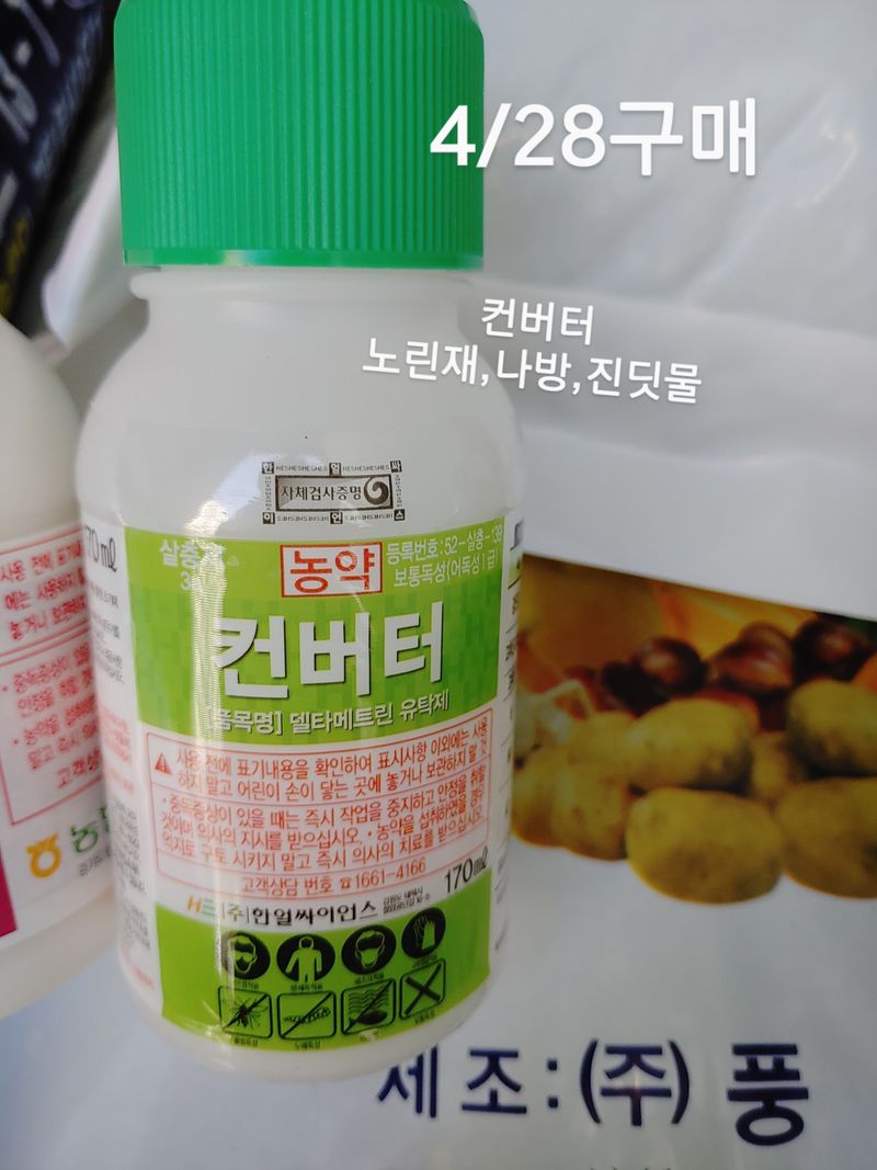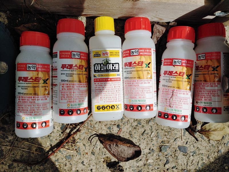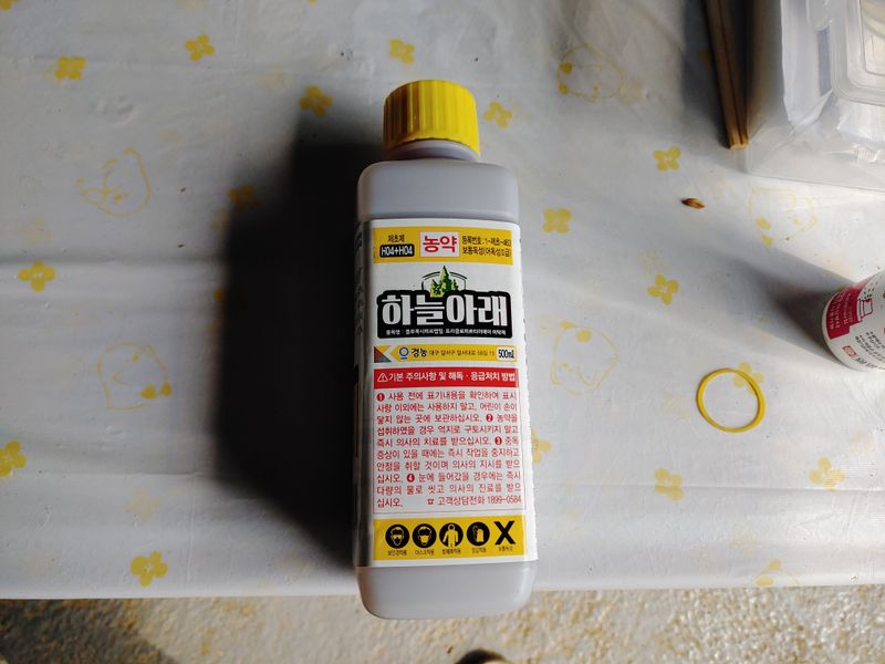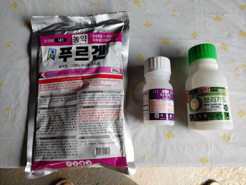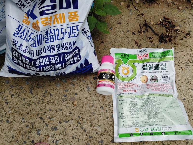 방제, 비가 2,3일에 한번씩 오는바람에 한2주 밀려서 겨우 오늘 방제! 그러나 내일 또 비가... 그럼에도 이번주 일요일도 비온단다. 그래서 더 이상 미룰 수가 없다