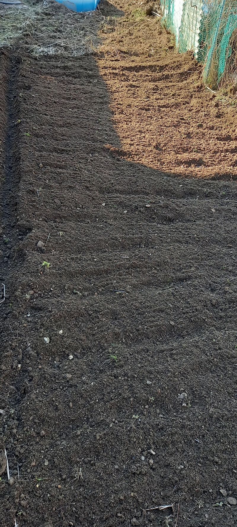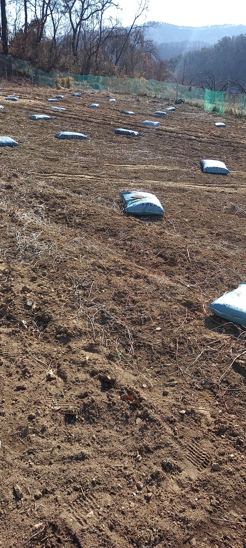 겨우내 잠들어 있던 밭에 영양공급하기 위해서 퇴비를 주었습니다