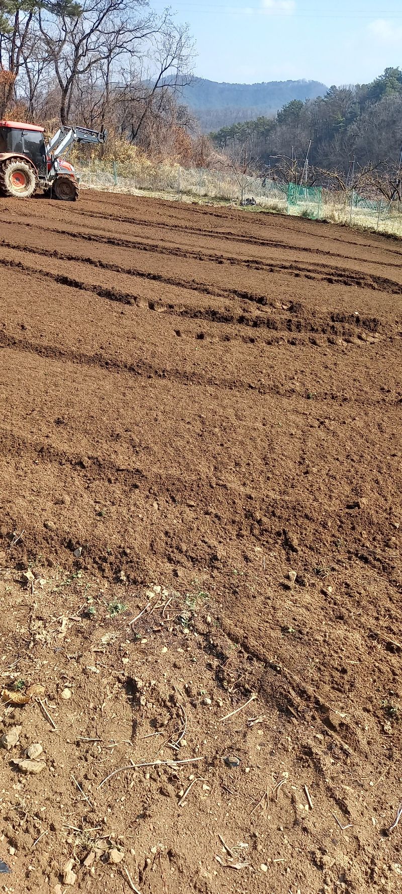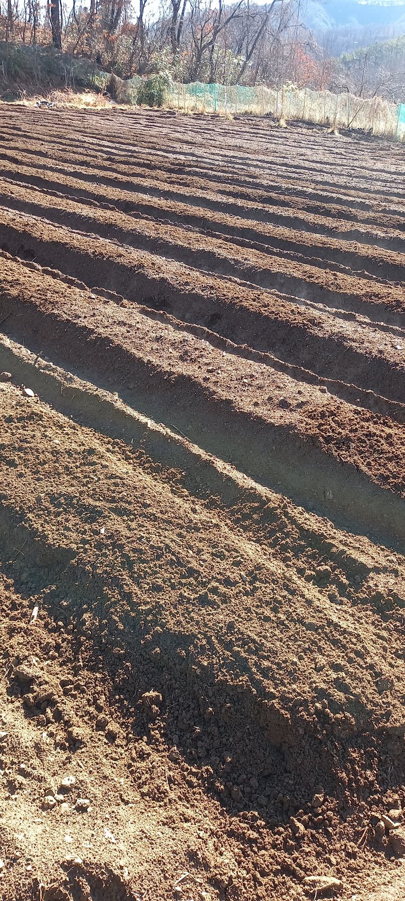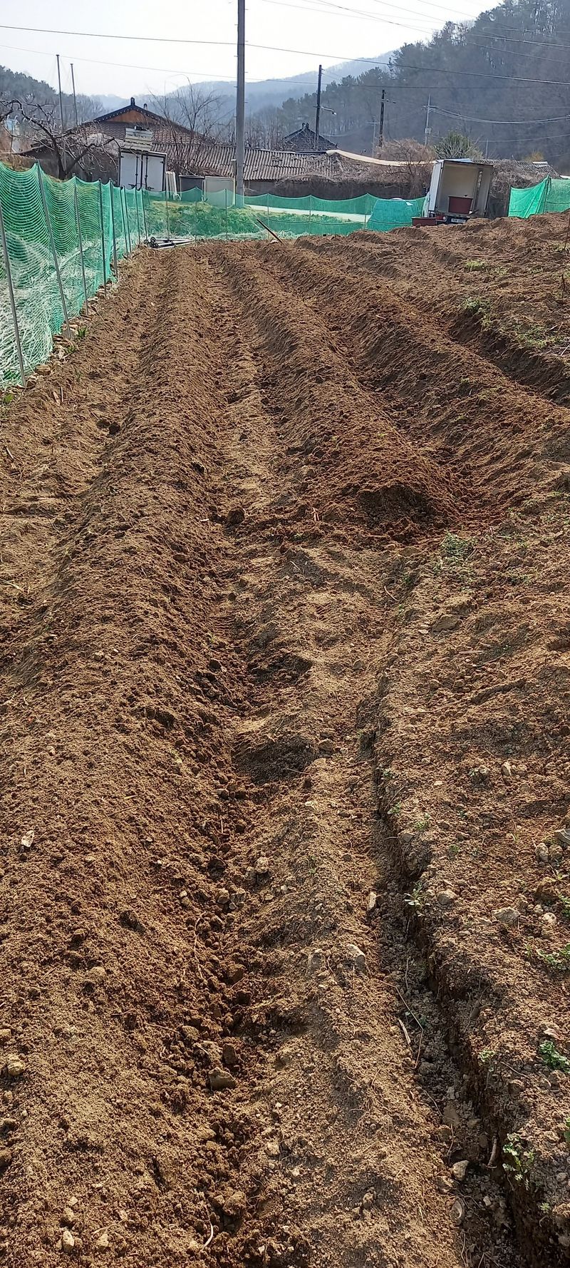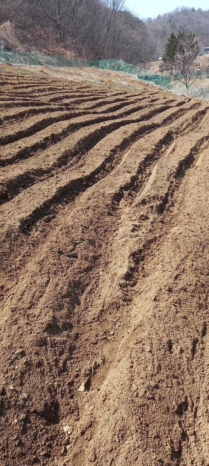 감자밭 로터리 작업후 밭고랑 만들었어요
