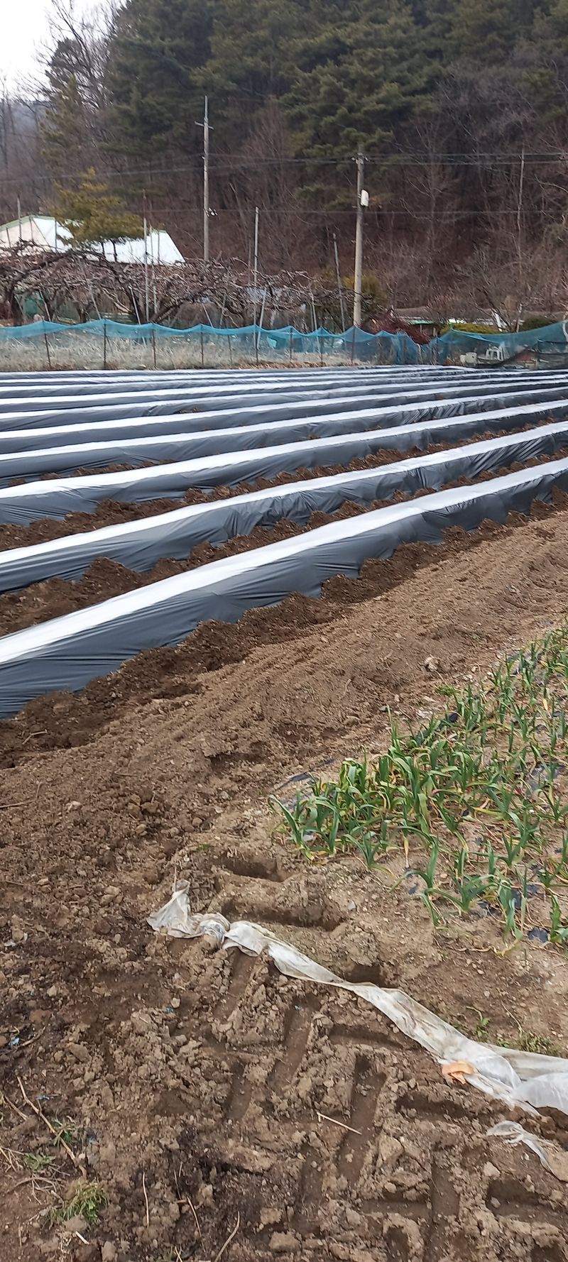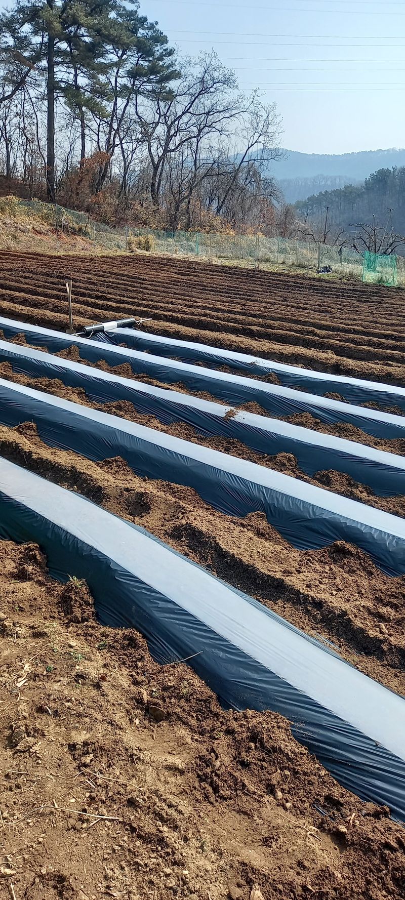 감자밭 비닐씌우기 했어요 혼자서 하려니까 힘들어요