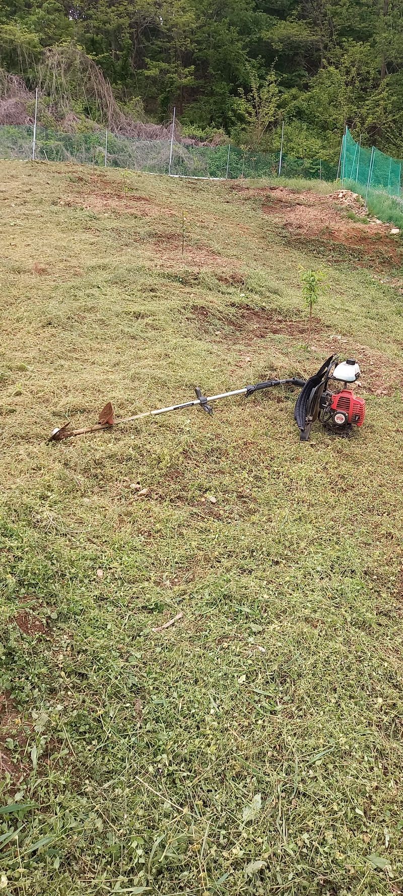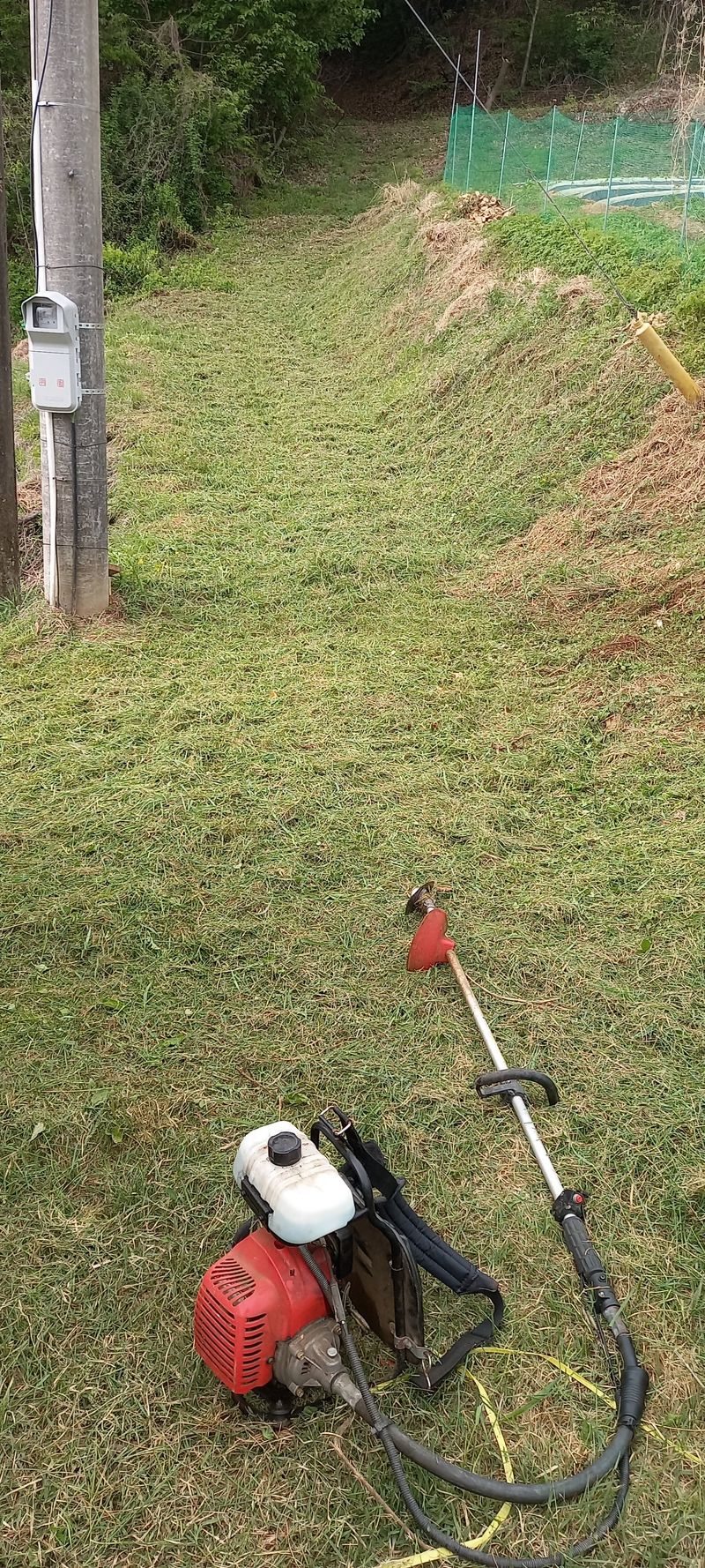 밭주변 예초기로 풀 깎았어요 선선하니 작업하기는 괜찮은데 돌이 많아서 풀 깎는데 좀 어려워요