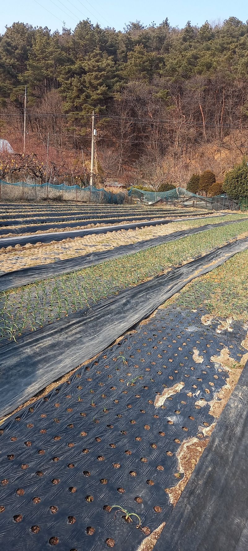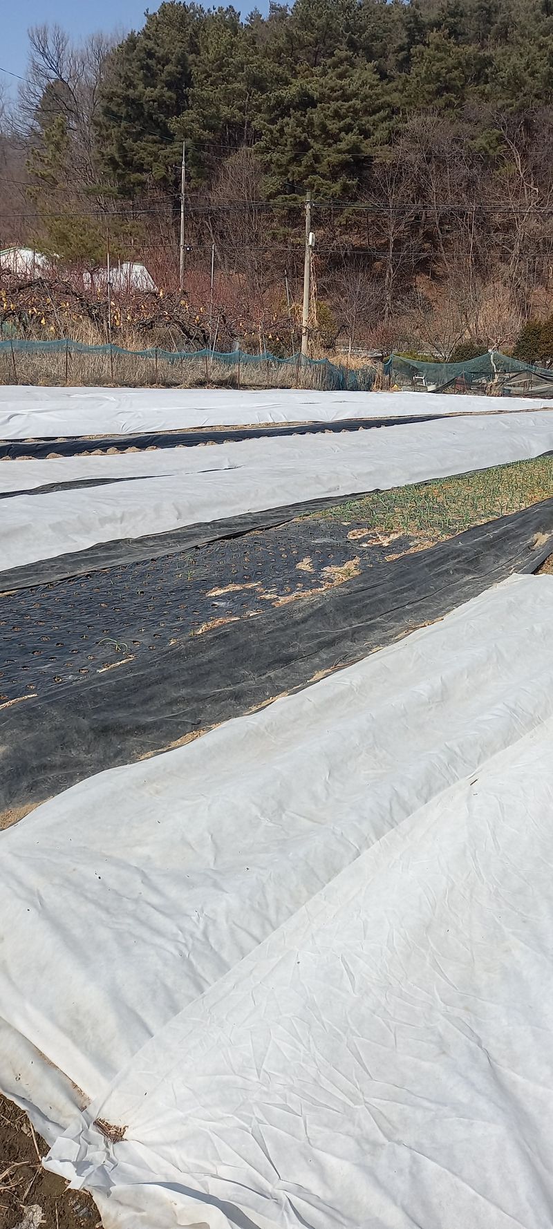마늘 양파 부직포 걷기 겨울 가뭄에 힘겹게 자라고 있는데 잘 자라야 할텐데