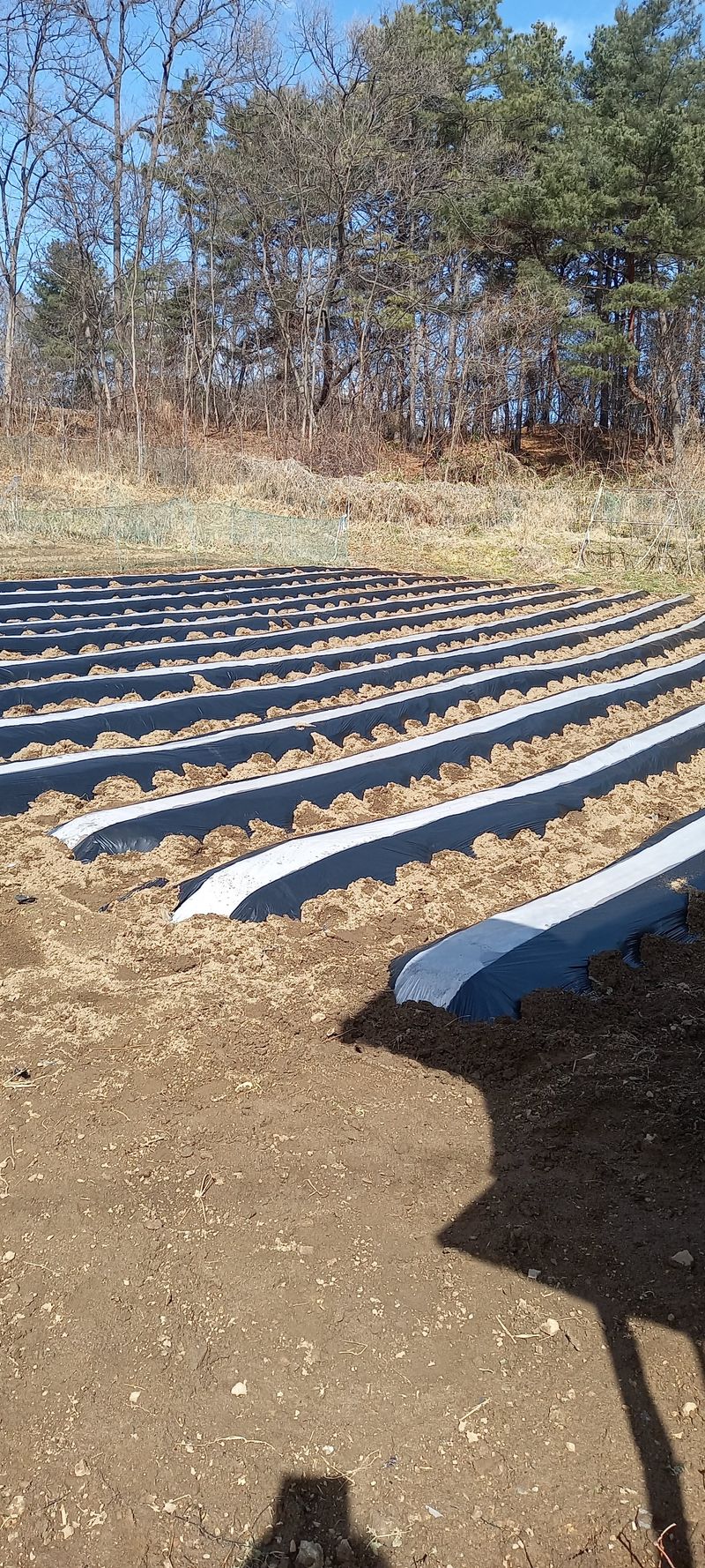 감자밭 형성 및 두둑만들고 비닐씌우기 작업했어요 곶 감자도 심어야 하니까