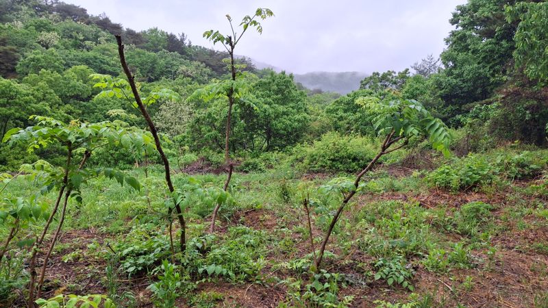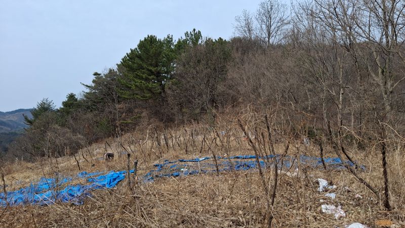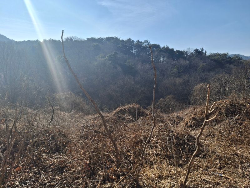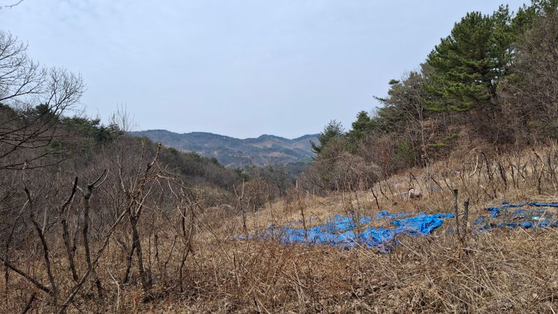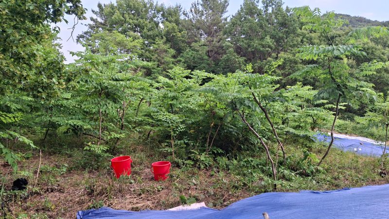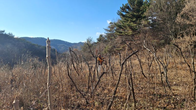두릅밭 전지하고 잡풀정리하고 가시나무와 칡넝굴 짜르고 짤라도 끝이없네요 밭관리 힘드네요