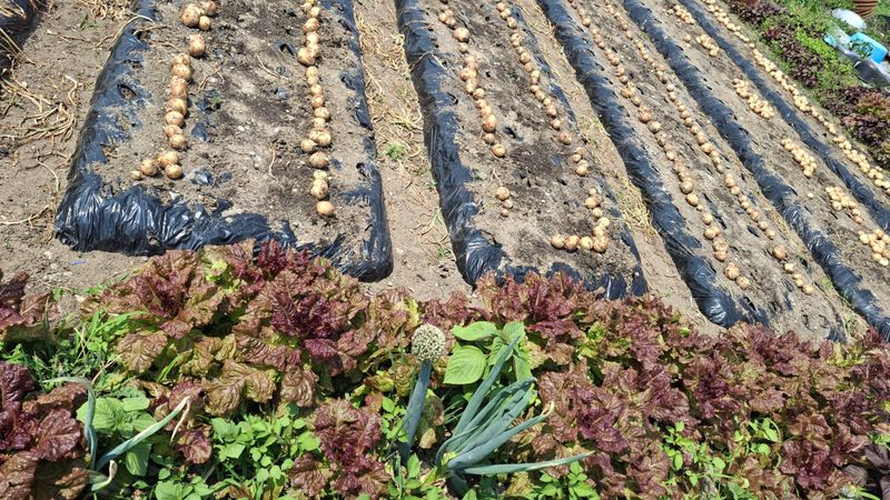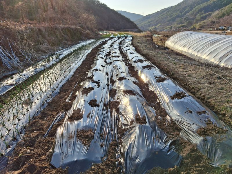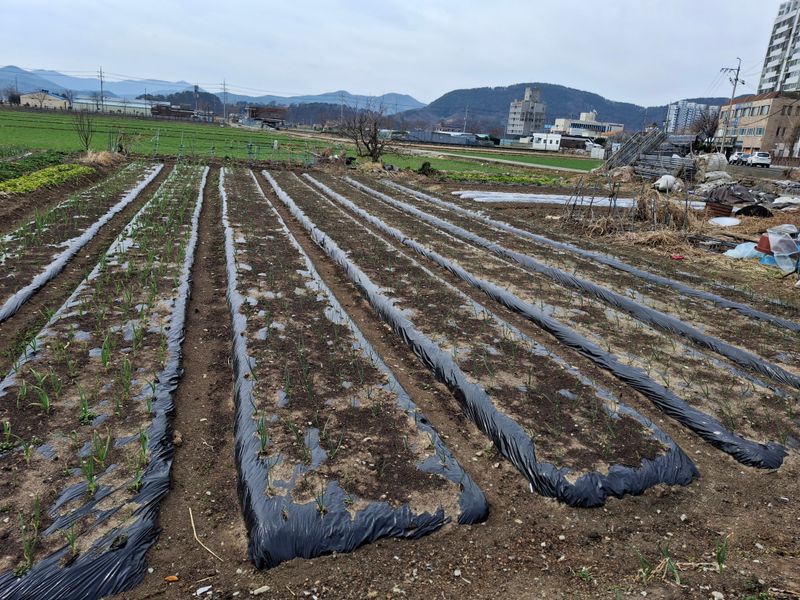 두둑을 흙으로 덮어주었습니다 바람으로 흙으로 싸여있는 비닐이 많이 떨어져 있어서 다시덮어주는 작업하였습니다 날씨가 비가올려고 그런지 따뜻해져서 봄이조만간에 올것같아요