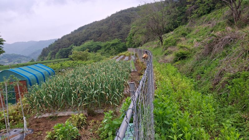 비가오는데 전지작업과 두릅 고사리수확하고 왔네요 풀이 정신없이 올라오네요 약을 쳐야하나요? 아님 풀베기 작업을 해야하나요?