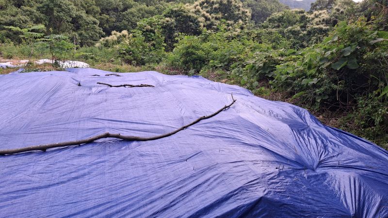 전지하기 힘들어 천막으로 덮어놨습니다 9월 10 월에 다시 펼칠려고요 베도베도 끝없이 올라오는 풀