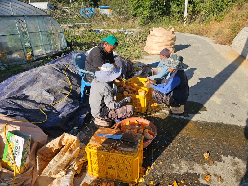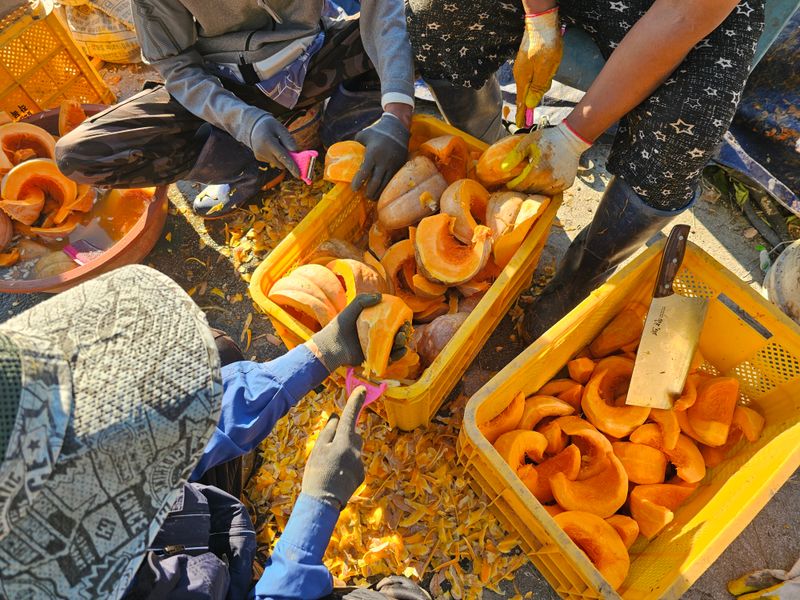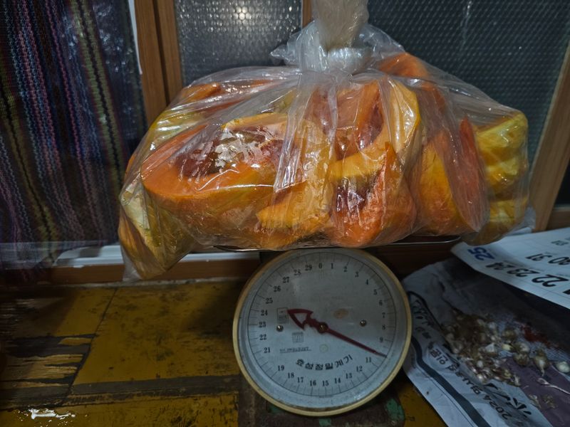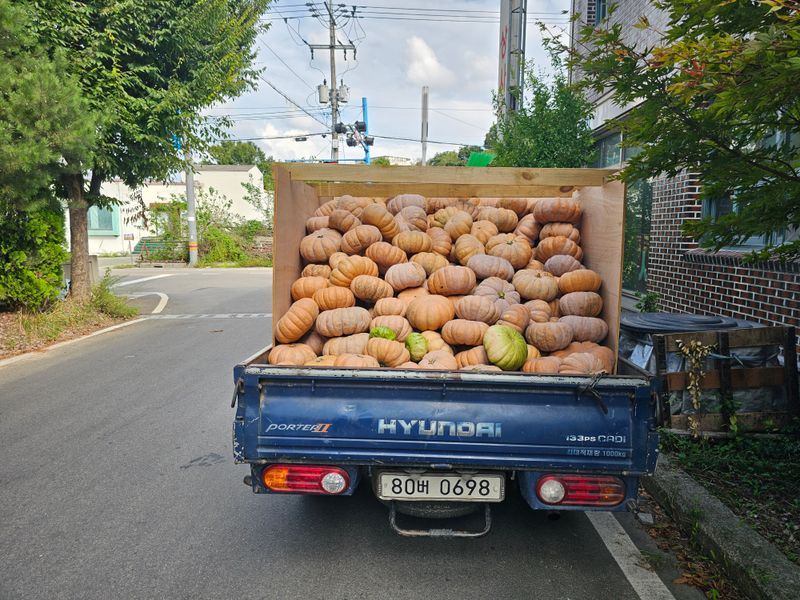 수확 일주일째 늙은호박(청둥호박)=멧돌호박 수확후 선별 가공하고 있습니다. 010-5516-7272 톡 문자주시면 확인후 답 드리겠습니다.