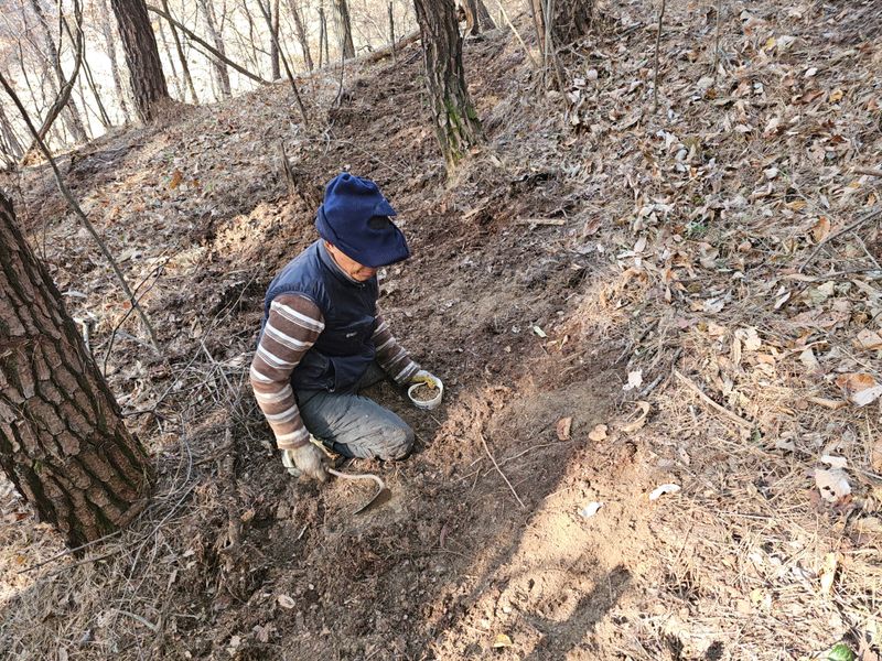 씨앗 파종 외국인인력 10명 한국인 2명 씨앗 15키로, 5년근 10채 면적 3,000평
