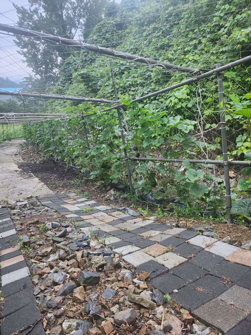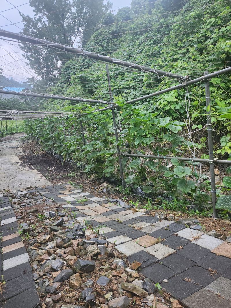 단호박(달꼬미) 처음재배 하고 있습니다 70평에 덕대 세우고 올리고 있습니다 호박이 그런대로 달리는데 잘크질 않습니다