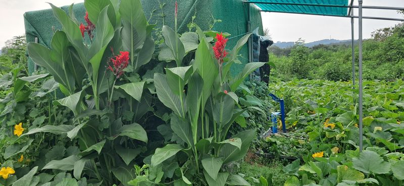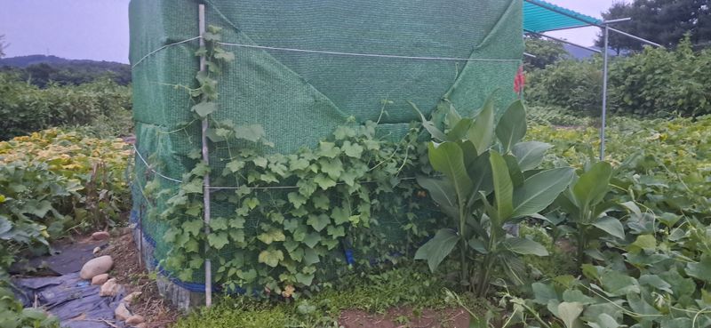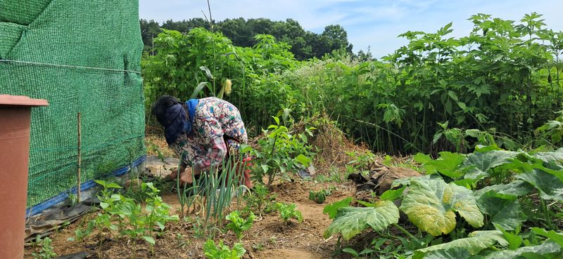 주로 고구마를 심어 1년 내내 먹고있으며, 채소 종류 10가지 정도 심어 먹고있음. 요즘은 돼지감자만 해요.