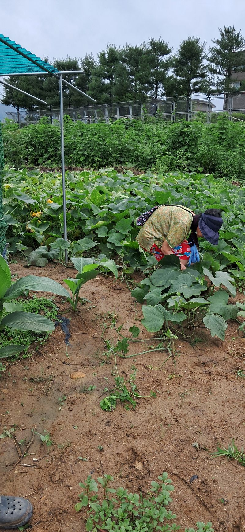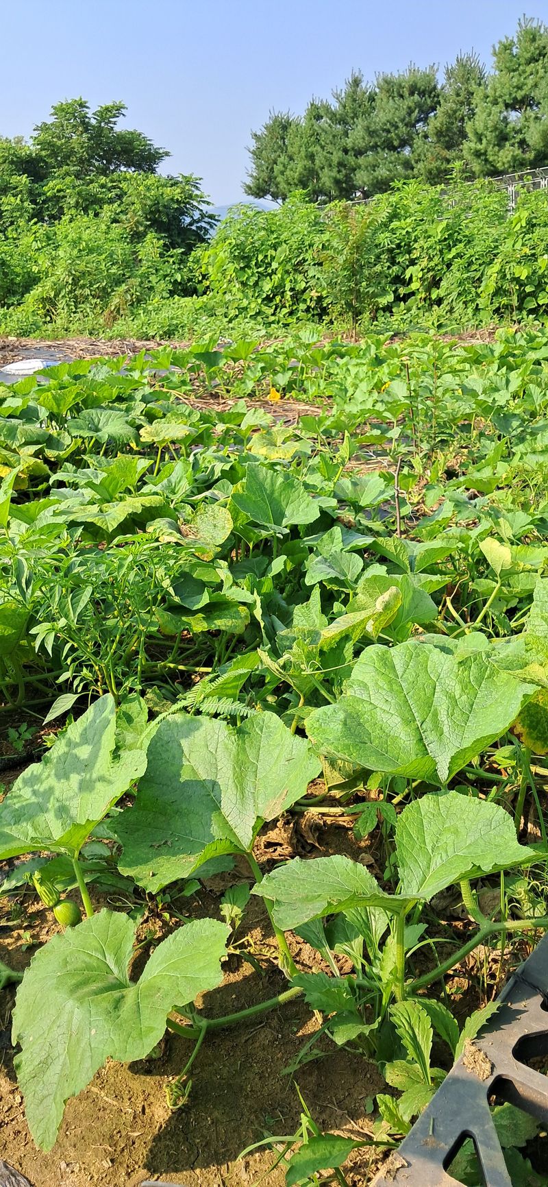 나무와 호박 및 채소들에 풀뽑고 물줌.