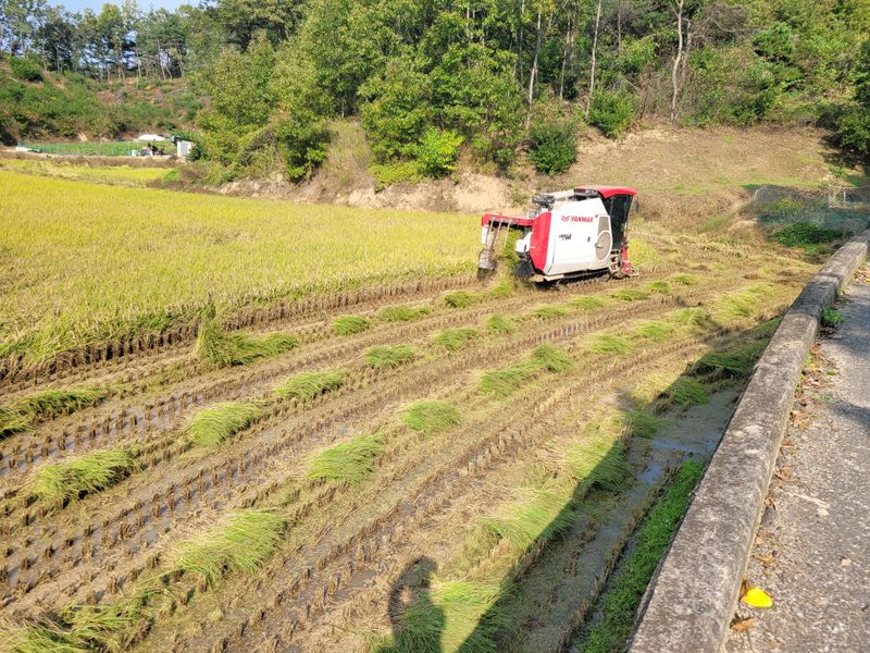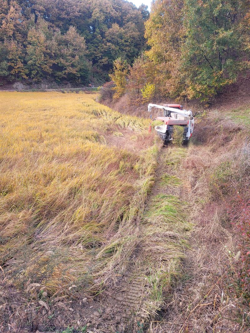 오늘 벼수확 하고 있어요. 뭐 큰농사는 아니지만 좋습니다.