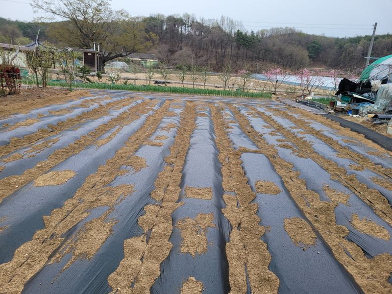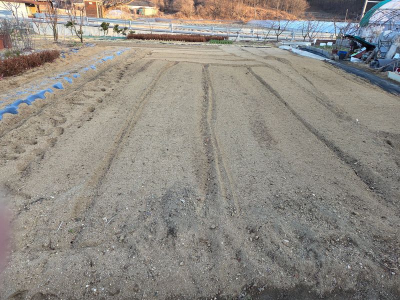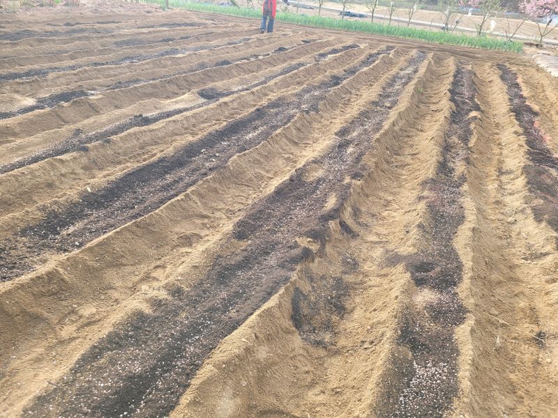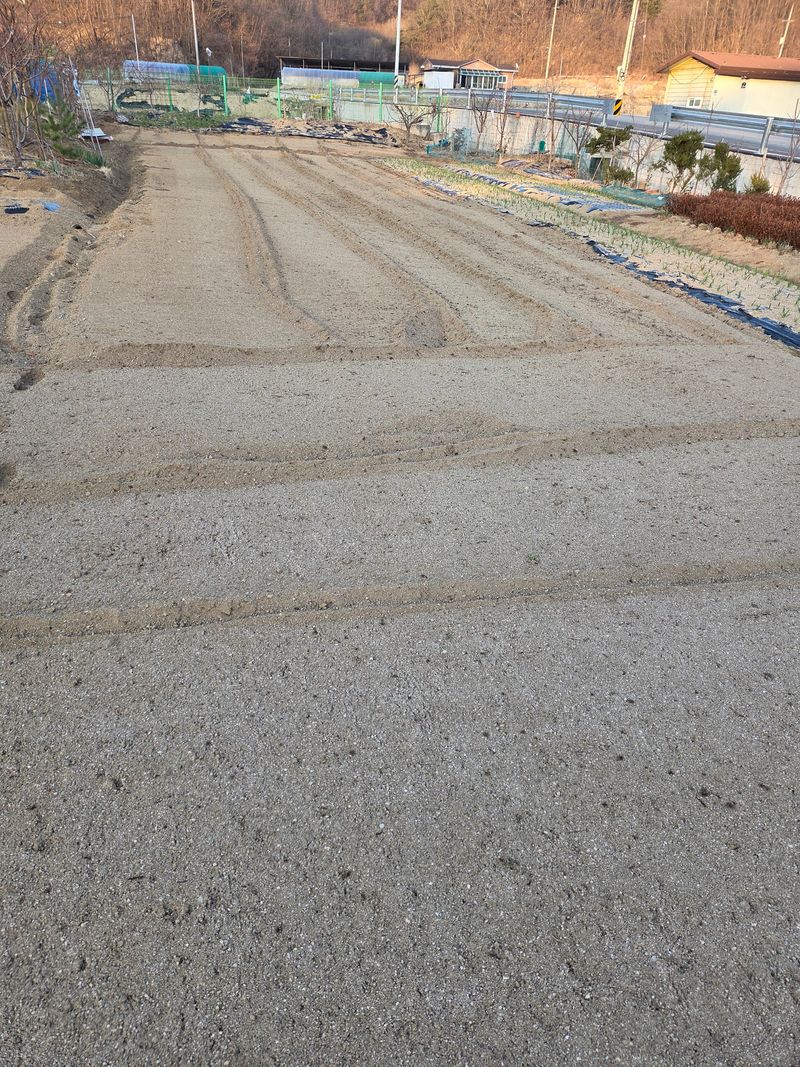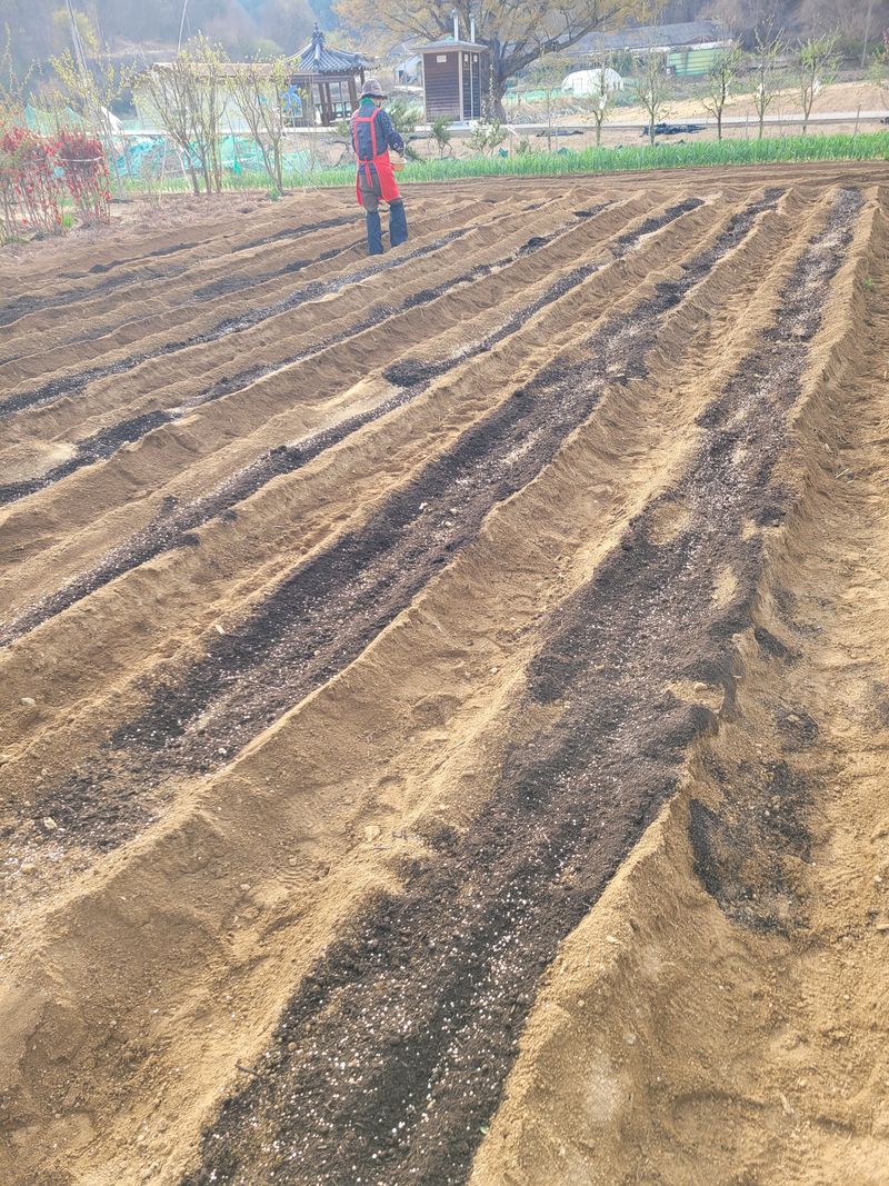 무우씨앗 직파 ᆢ 비료살포후 로타리 했으며 토양살충제 살포후 이랑을 만들고 무우씨앗을 직파했습니다.