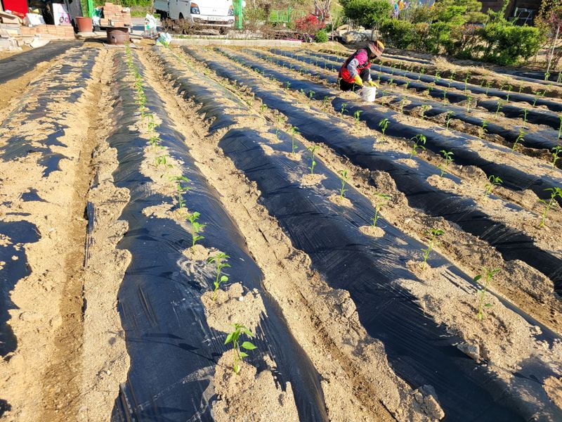 올해도 고추지주꼽았 습니다. 고추가 많이 달고 풍성했으면 좋겠습니다.