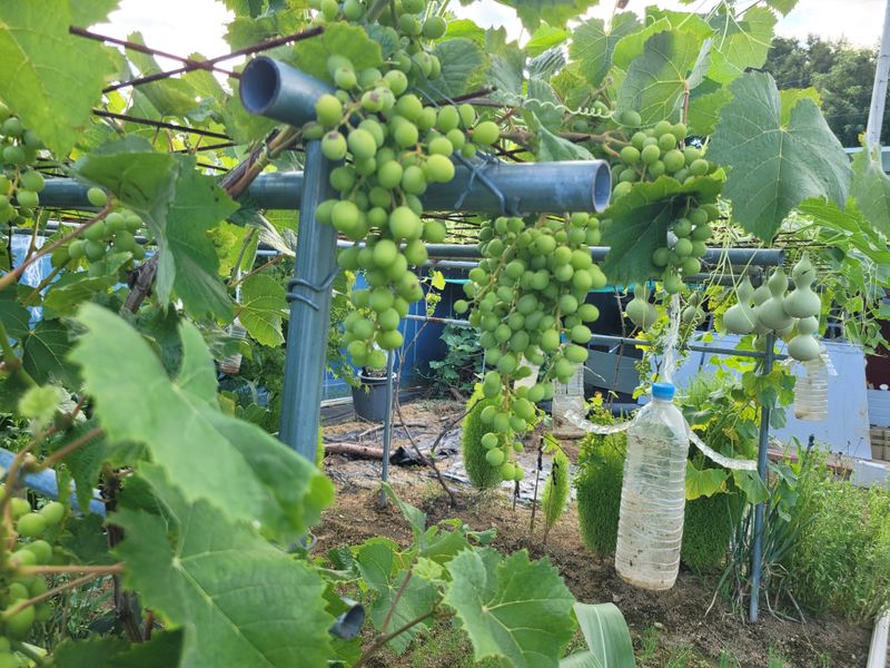 올해도 콩 노린재와의 싸움이 시작 됩니다. 크레졸 비누액을 5병 1000cc을 ᆢ페트병 80개에 나누어 담고 ᆢ5 - 6m에 하나씩 놔았네요. 무더위에 사워한 느낌 입니다. 오늘 사진을 찍지못했네요.