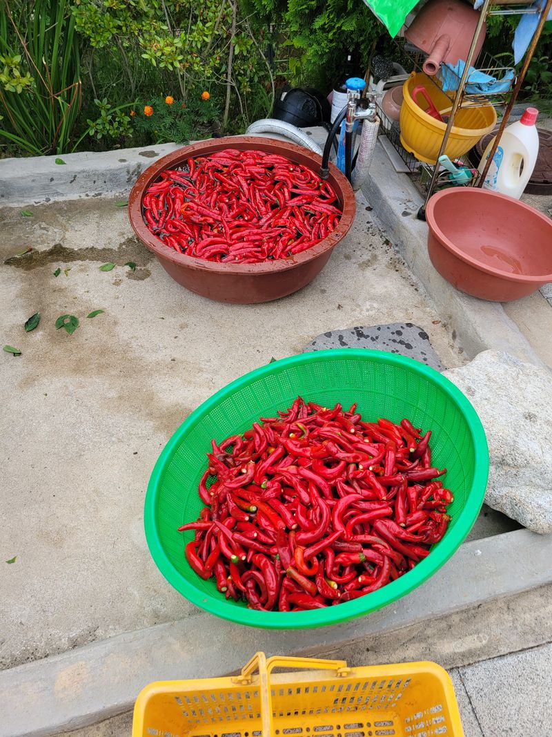 고추 수확했습니다. 올해는 고온에 넘 비가오지않아 조금만 수확 합니다.
