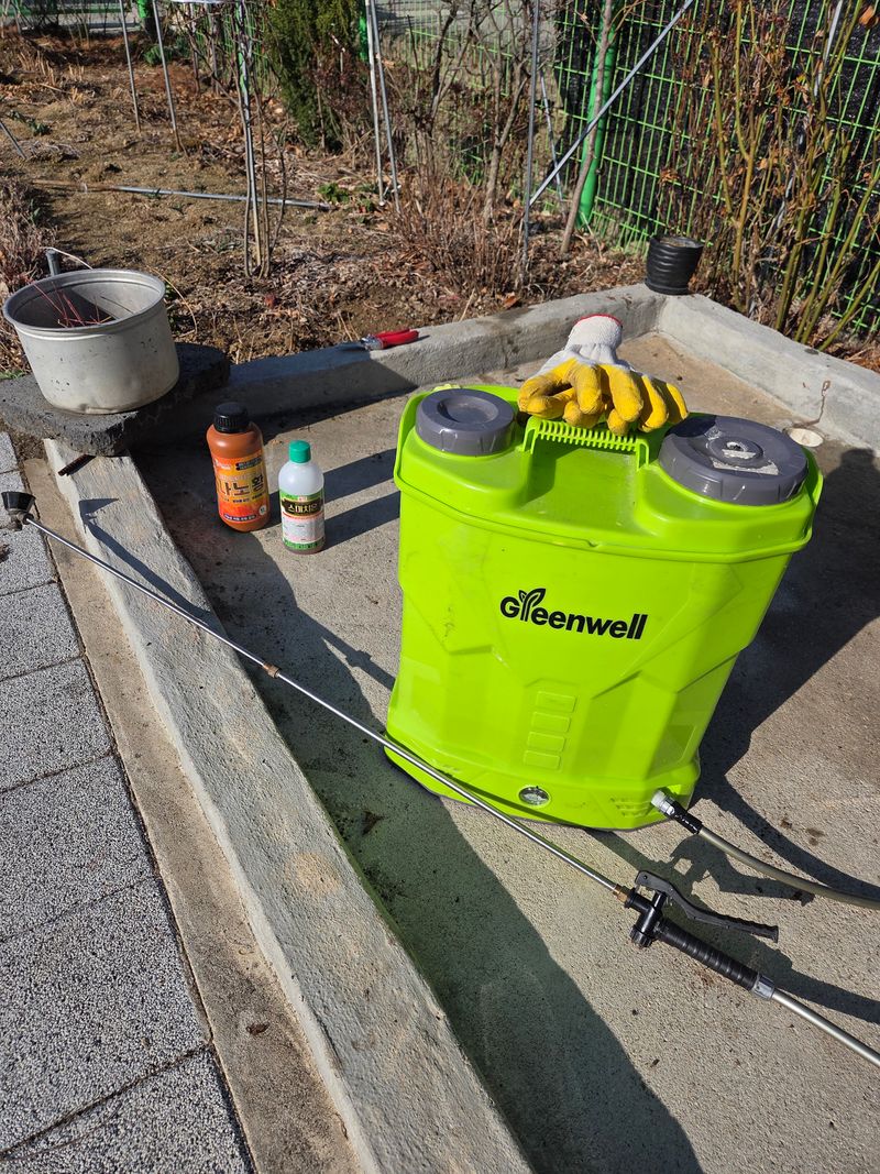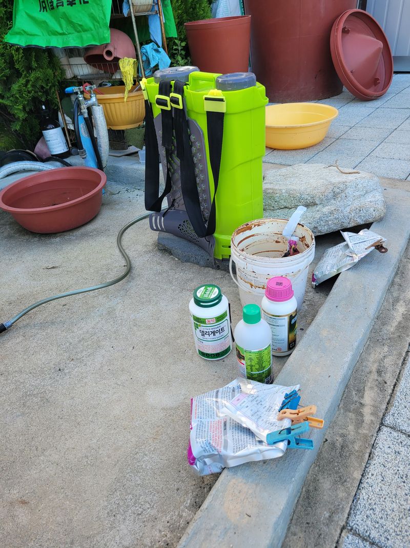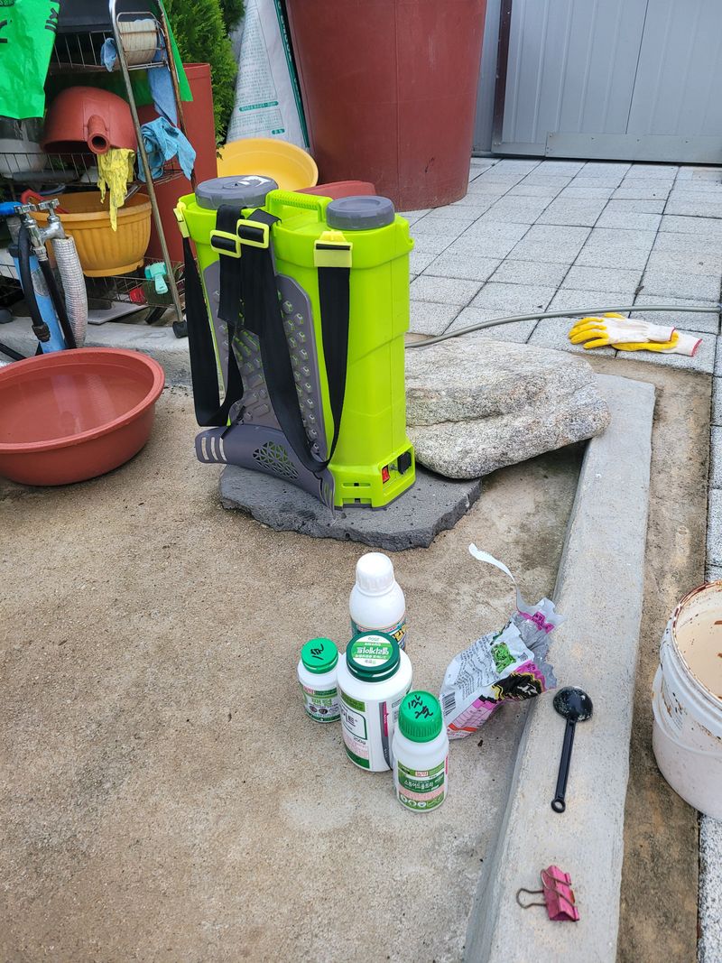 농약살포 ㅡ ,모두 싹 . 알찬 마그봉칼 . 전착제 좀 진하게 살포
