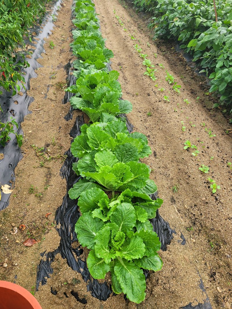 김장배추. 무 안동에는 넘 가뭄심하여 매일 물을 주지않으면 배추.무가 견디지 못하니까 매일5시가 지나면 물호수로 물을 주네요.ㅎㅎ