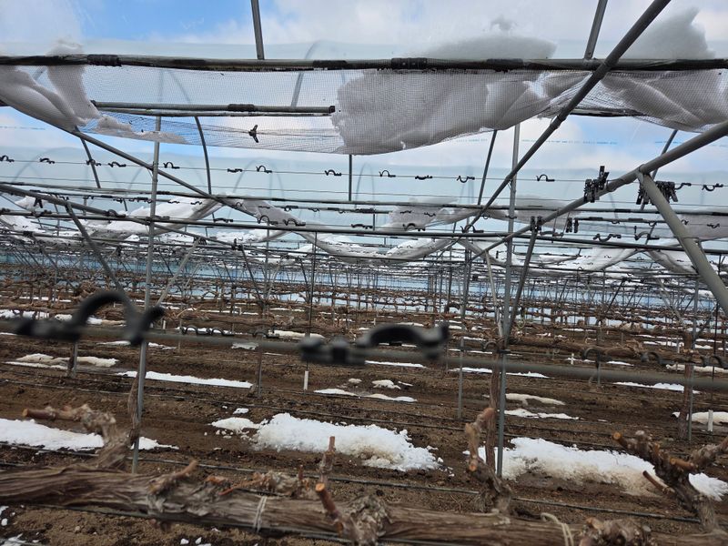 포도밭 차광망 걷기작업 철사핀 뻬고 말아서 북쪽 에모아둠 감사비료 나가이끼 5포 사옴
