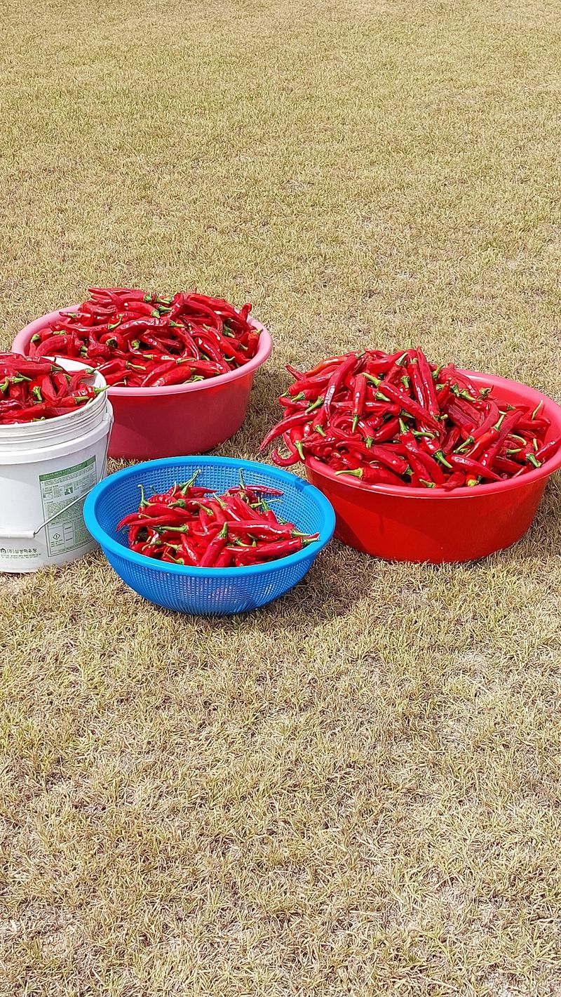 8/1 홍고추 수확(7근) 건고추4.2kg 8/20홍고추 수확(11근) 건고추6.6kg