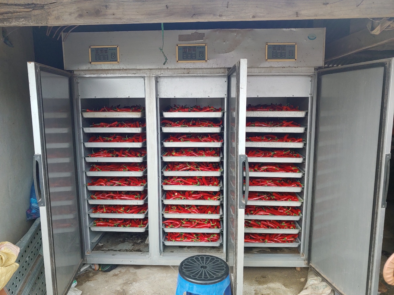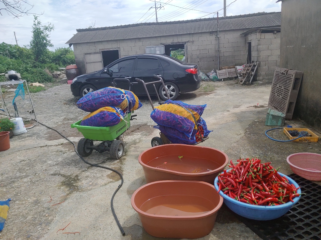 장마가 지나간 하루날에 첫수확한 고추 건조기에 말림.나머지 하우스에서 자연건조