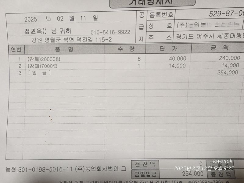백장군참깨 300그람코팅 코팅비용 254.000원 지출