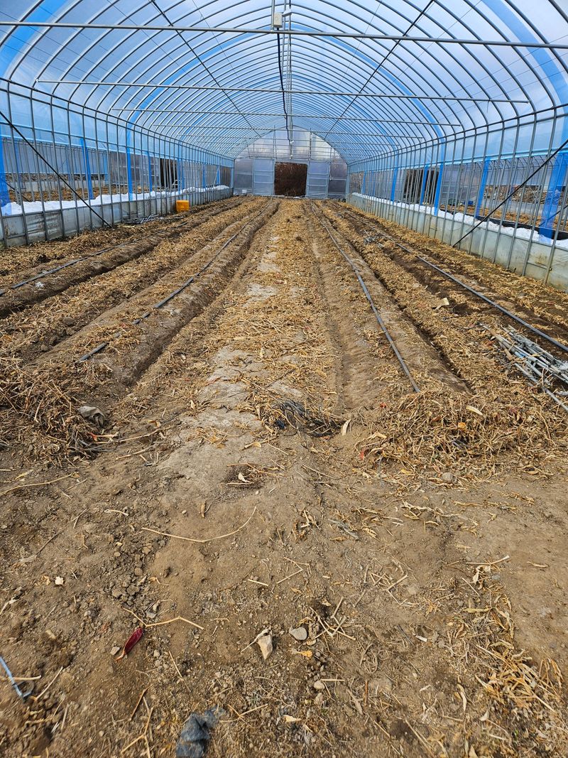 이곳 강원도 화천군 최북단에 500고지 지대라 아직도 기온이 차갑습니다 밤과 낮의 일교차가 심한곳 입니다 오전 9시가 넘어야 하우스 문을 살짝 열어주고 오후 4시면 하우스 문을 닫아줍니다