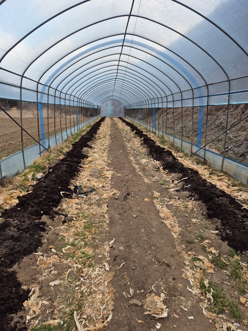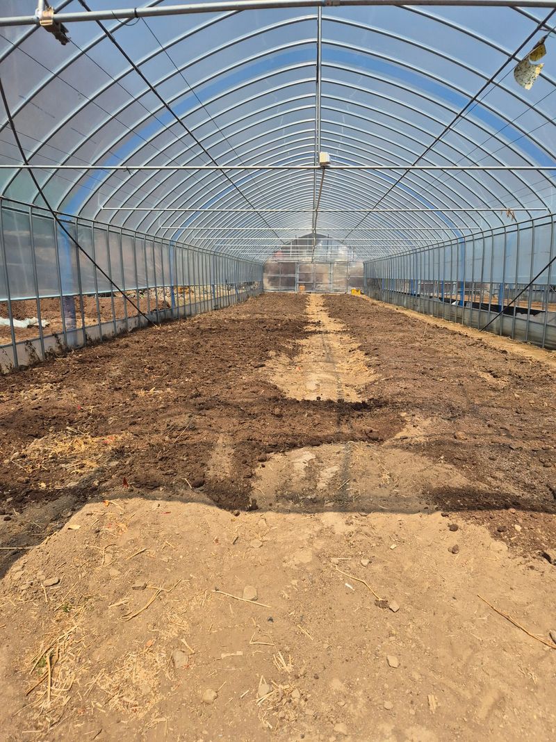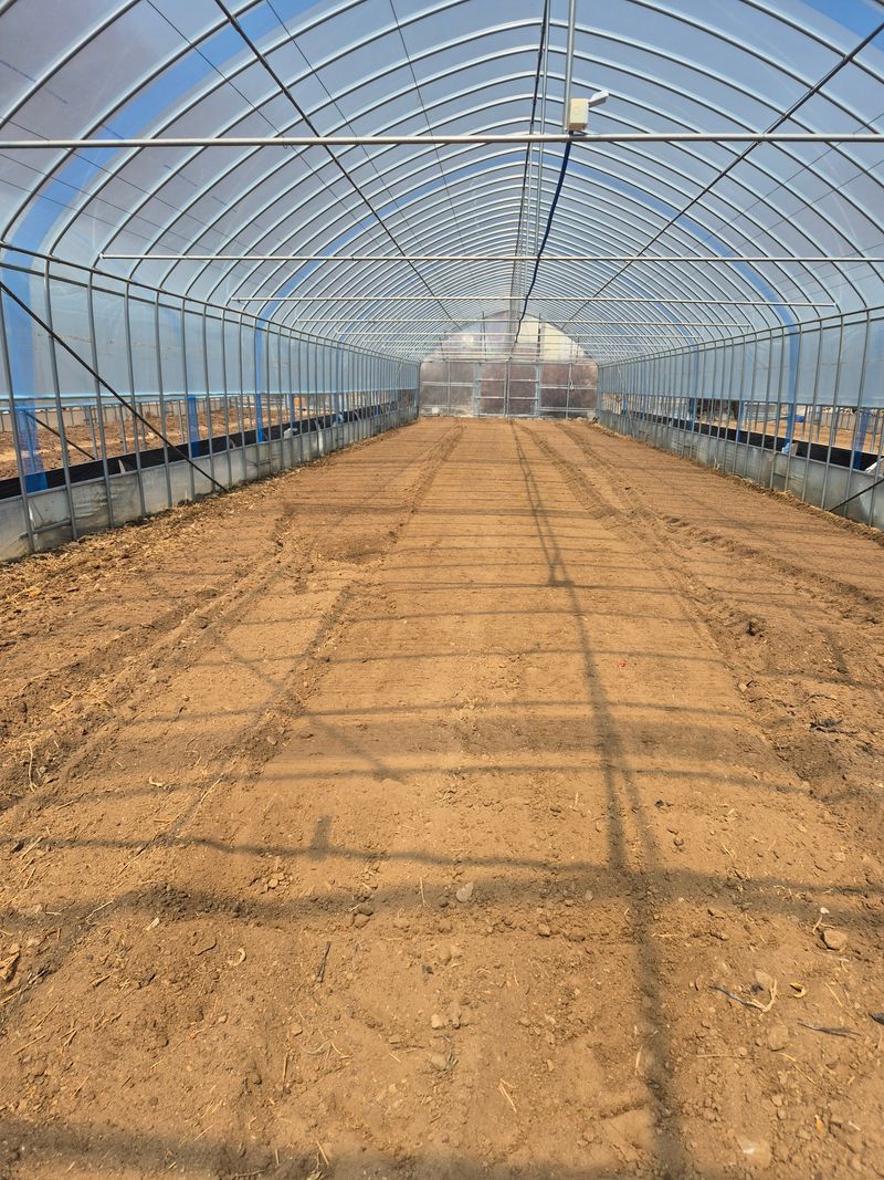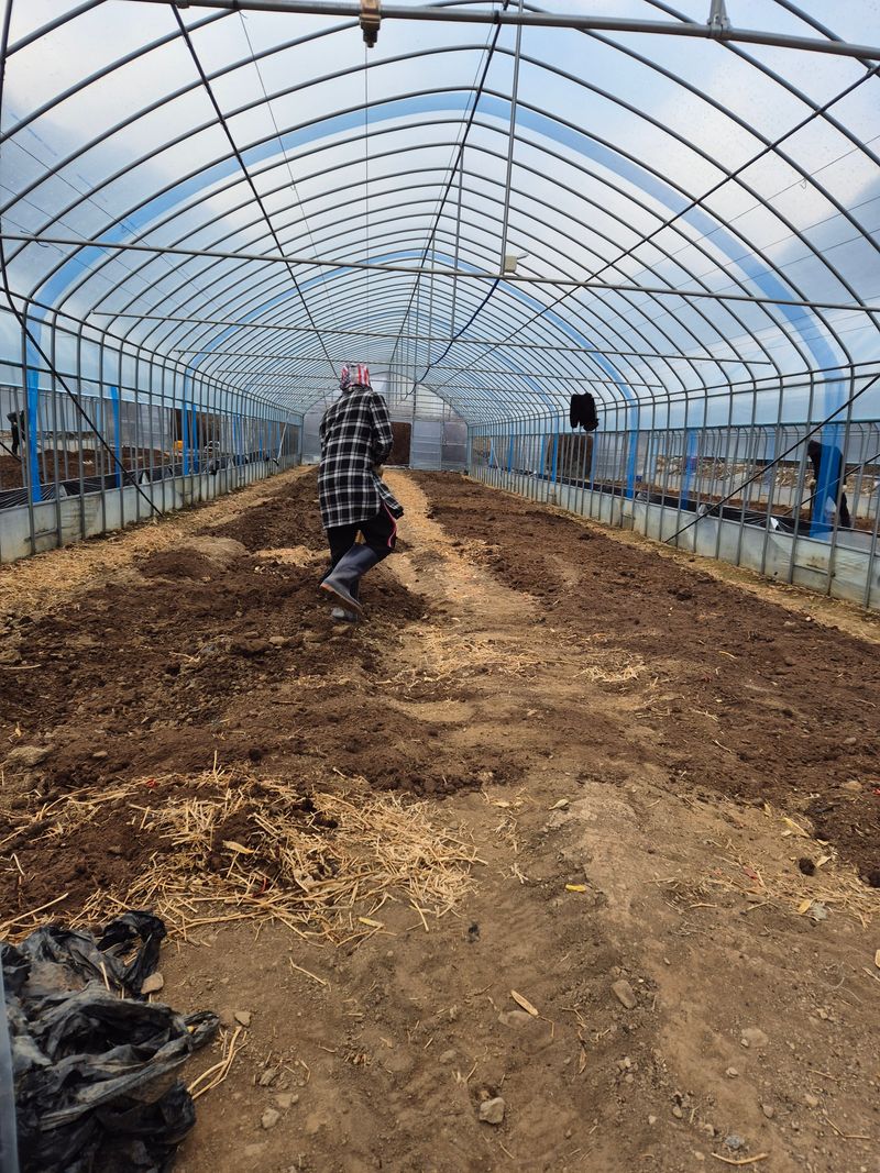 오늘도 고추밭 하우스를 깔아놓았습니다 거름과 비료를 뿌리고 2회 갈아놓았습니다