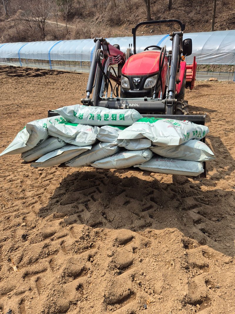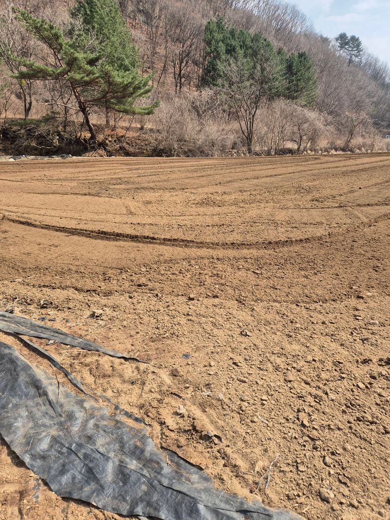 오늘은 노지밭에 거름을 펴고 난뒤 갈아놓았습니다 내일은 비소식이 있어요 비가 오고 난후에 비료와 살충제 살균제를 뿌리고 한번더 갈을까 합니다