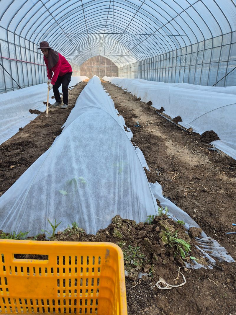 오늘도 고추모종 2000대 정식하고 비닐하우스에 모자라용 보온덮개를 덮주었습나다 올해 처음 시도해봅니다 잘자라주길 바랍니다