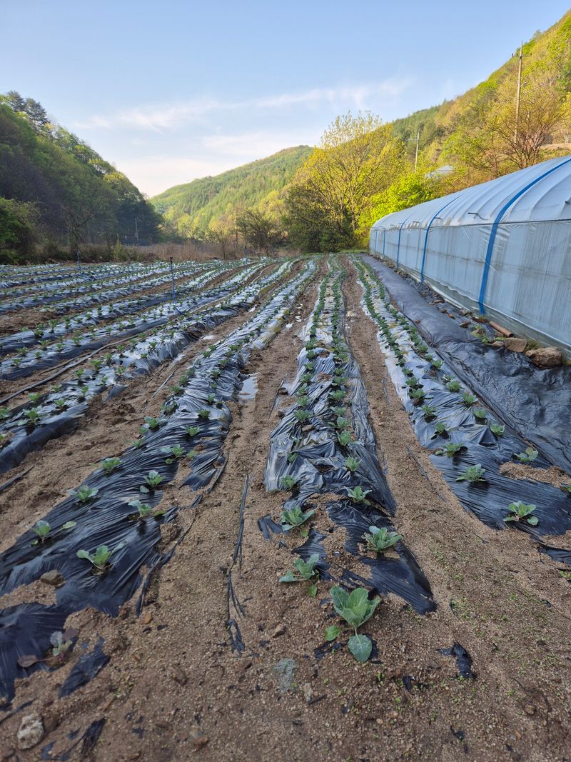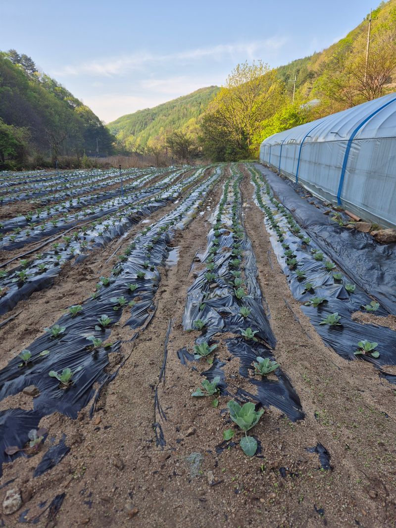 올해는 기온이 차갑습니다 양배추가 잘자라지안내요 오이맛고추도 날씨가 추워 하우스 문을 열어놓이 못합니다