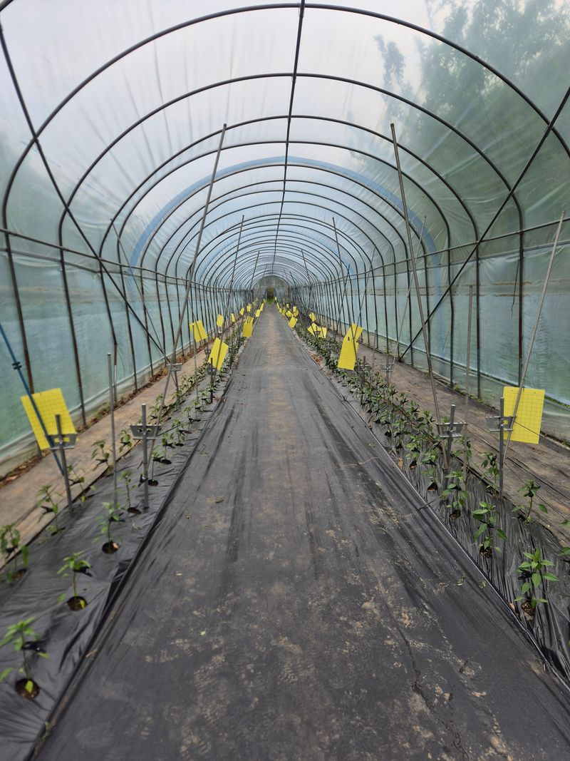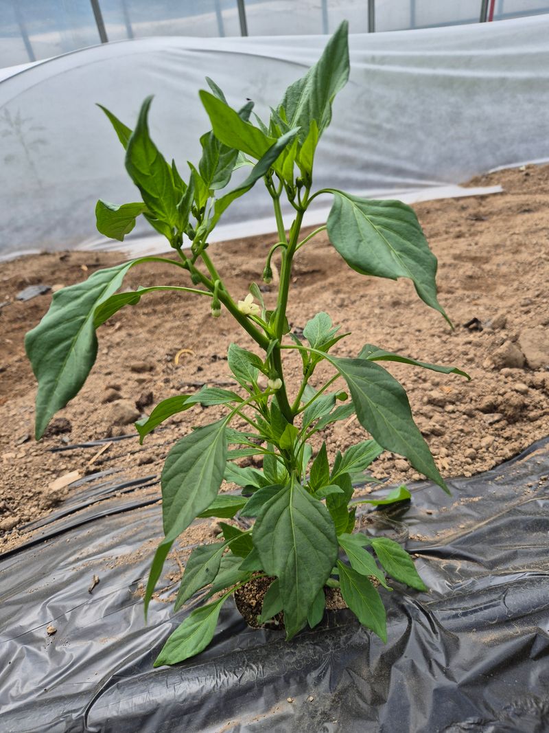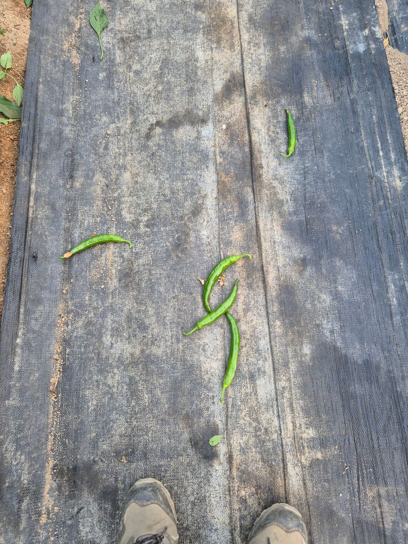 고추밭에 은박지를 깔아주었습니다 고운색으로 잘여물어달라고 은박지를 깔아주고 있어요