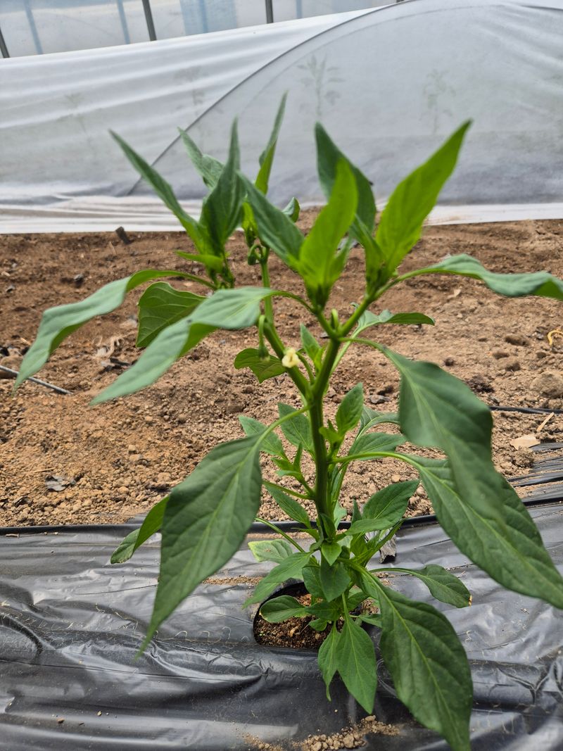 올해는 정통고추 심었습니다 고추가 아래만 조금 달리고 중간에는 잘안달리내요 요즘 위에서 고추가 달려서 웃비료를 주고 있어요