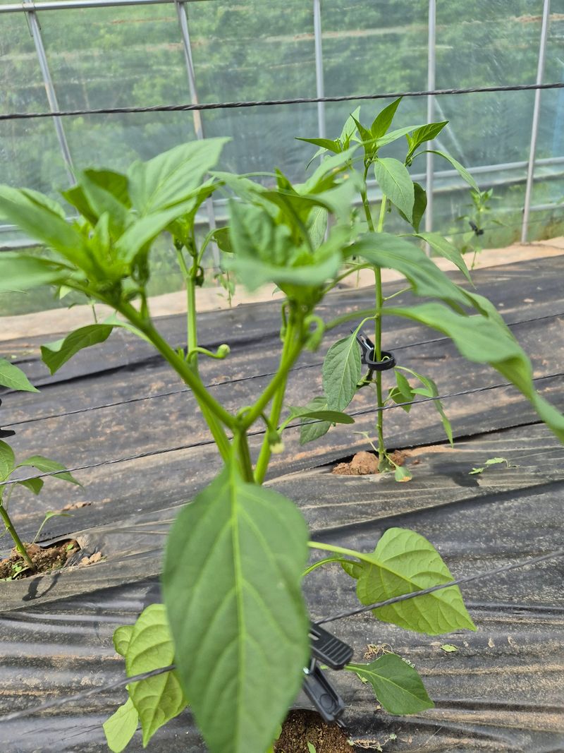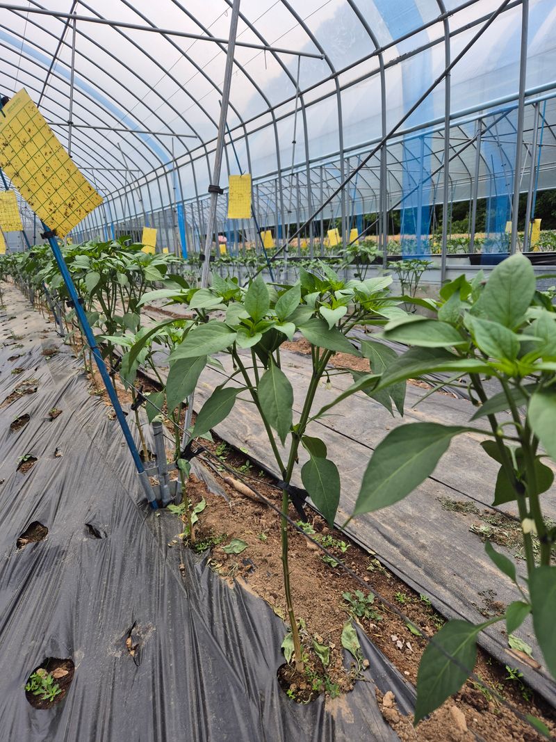 오늘은 고추순 따주고 고추끈 매주고 끈끈이도 붙여주어 병층해를 예방 하였습니다