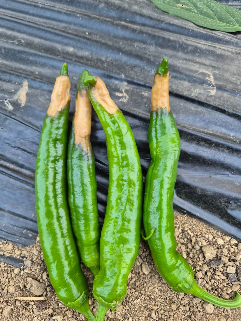 오늘은 아침일찍 카슘제와 벌레 약을 혼합하여 뿌려주었습니다 어제 고추밭에 손질을 하다보니 오이맛고추 칼슘부족으로 고추가 망가져서 따내어 버렸어요