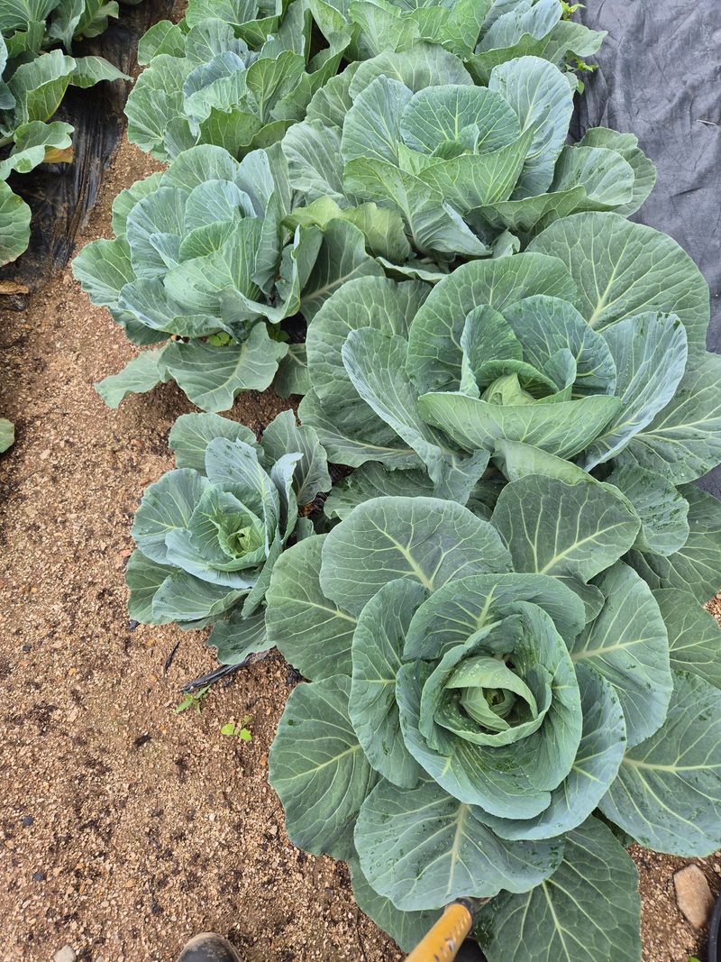 비오는 날 이틀간 정식한 양배추가 메말라 죽을까봐 걱정하였습다 오늘 마침 비가오니 한바퀴 돌아보았습니다 잘자라고 있어요