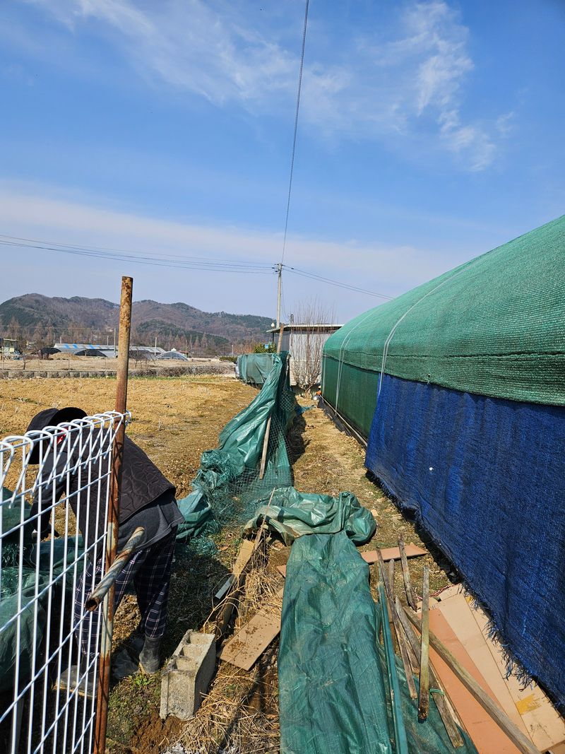동물방지용 방충망교체작업 완료 복분자나무 살충살균제 살포