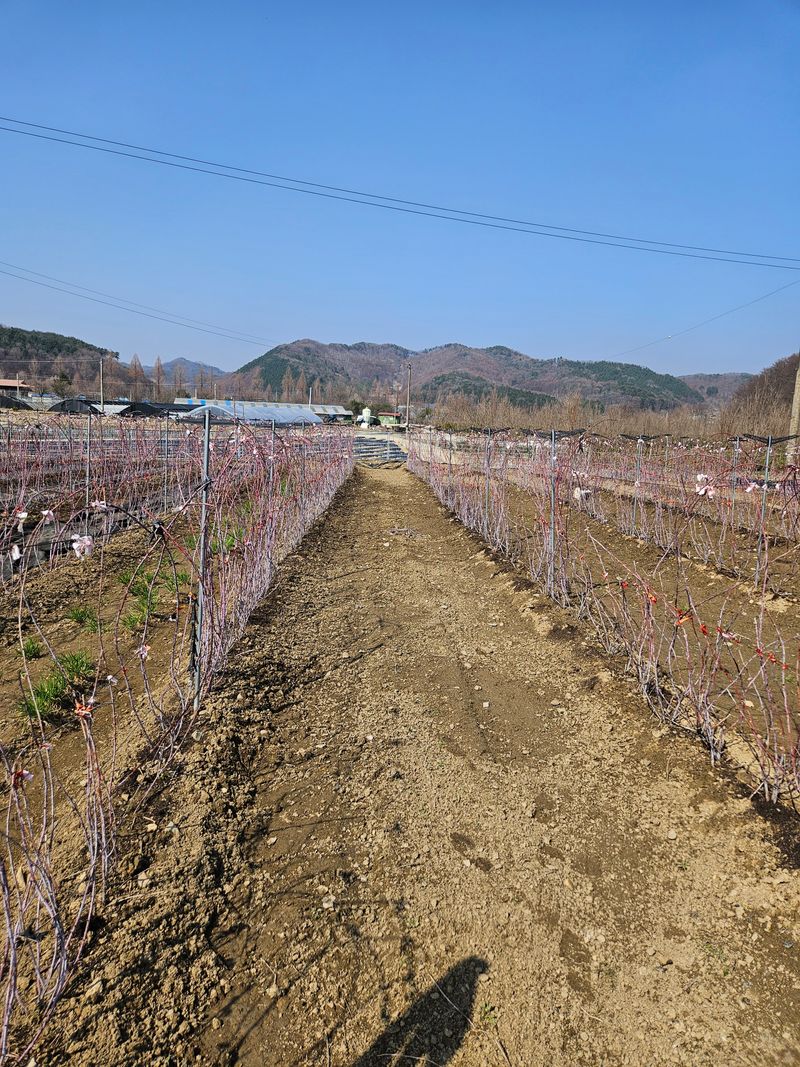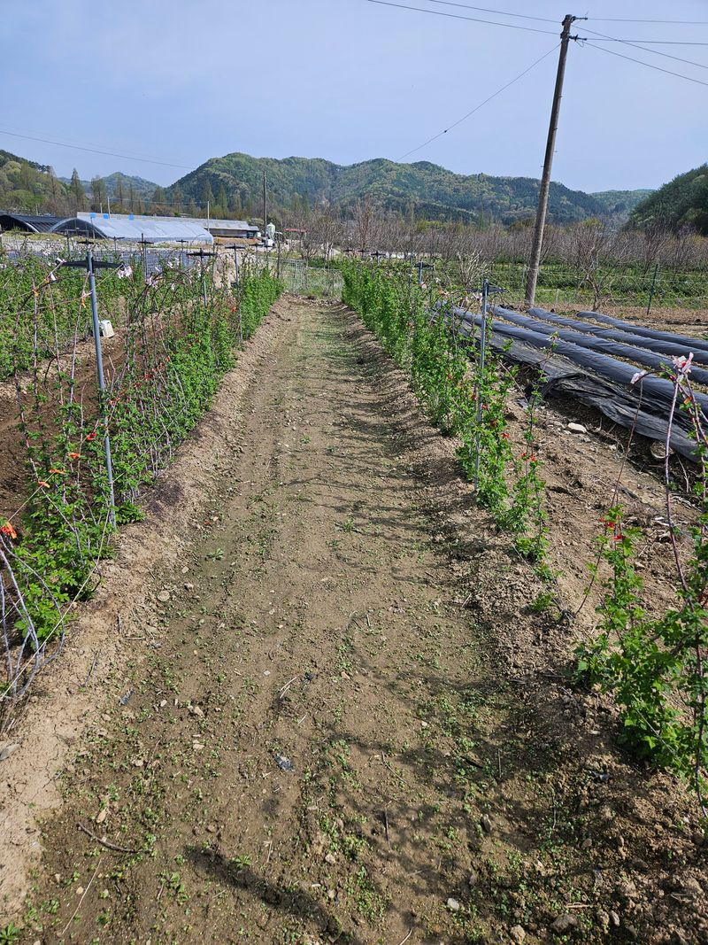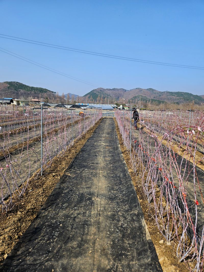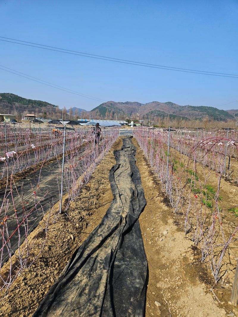 복분자나무 두둑잡초제거 및 두둑흙 퍼올리기 보강작업 복분자나무골사이 잡초방지용 구직포설치 (구직포 1.5m × 200m 3개)