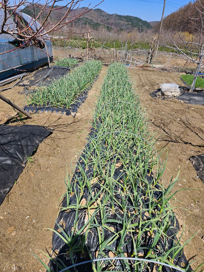 마늘 비닐제거 및 추가비료주기 복부자나무 냉해보호용 농약살포