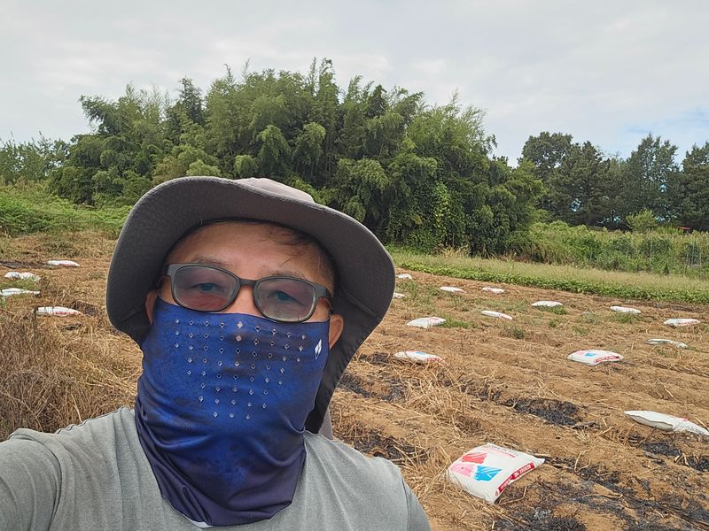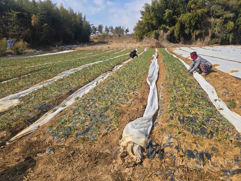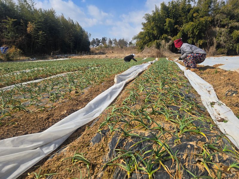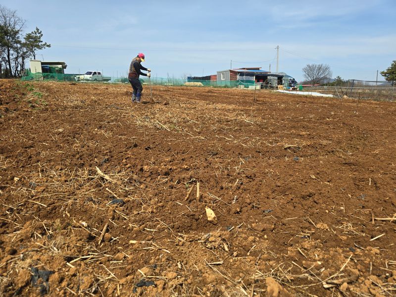 1.마늘.양파마지막살균제.영양제살포 2.고구마멀칭설치 3.사과대추.사과병충해.그린톡톡설치밎 잡초매트설치
