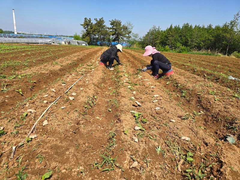 루비에스 사과유인작업 두릅수확 마늘잡초제거