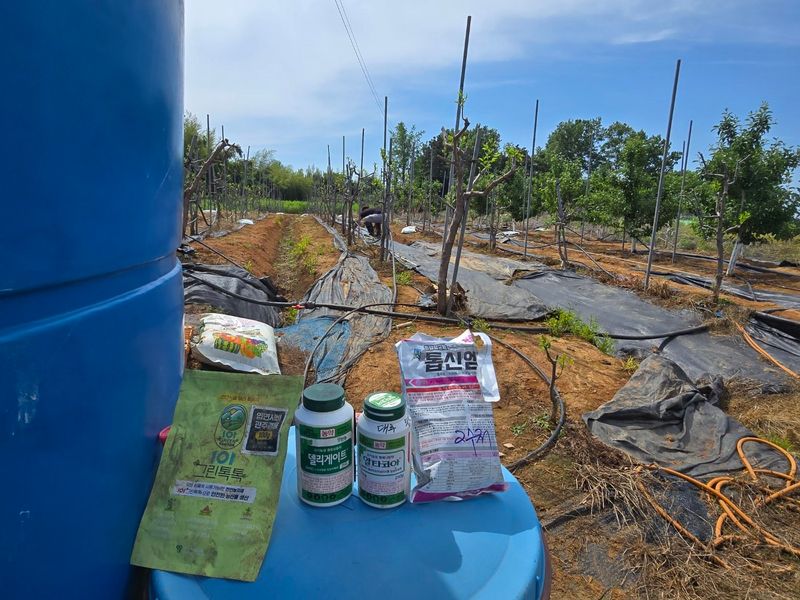 마늘:살균제.칼슘제살포 양파:그린톡톡101살포 사과대추.루비에스.복숭아:나방약.총제벌레.그린툭톡살포
