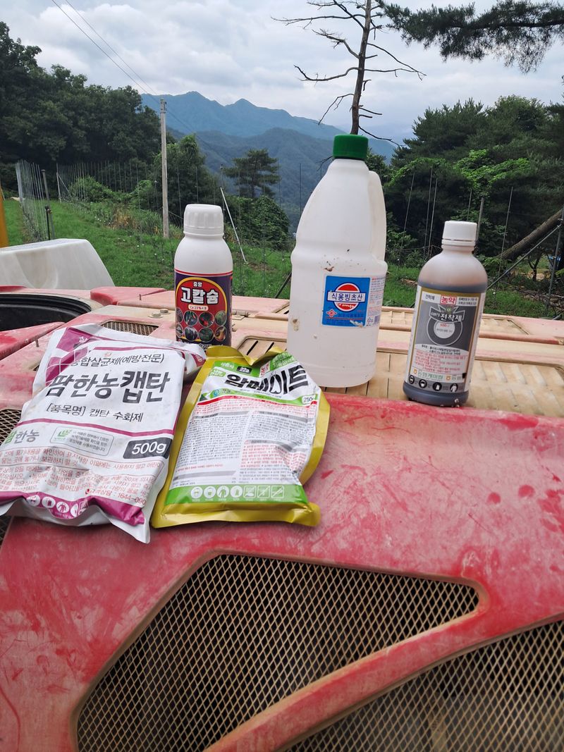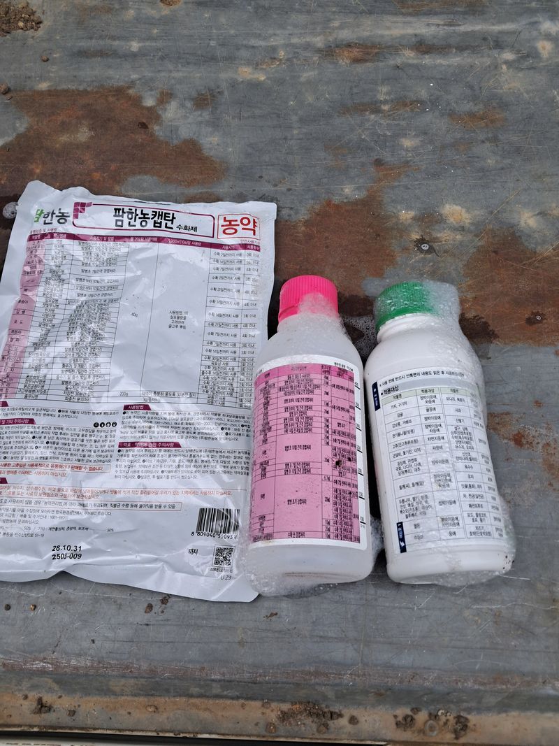 1104번지캡탄500+아메이트250+고칼슘500+빙초산0.5컵 1105번지데란500+앙ㅁ메이트250 고칼슘500빙초산0.5컵전착제+물500리터살포
