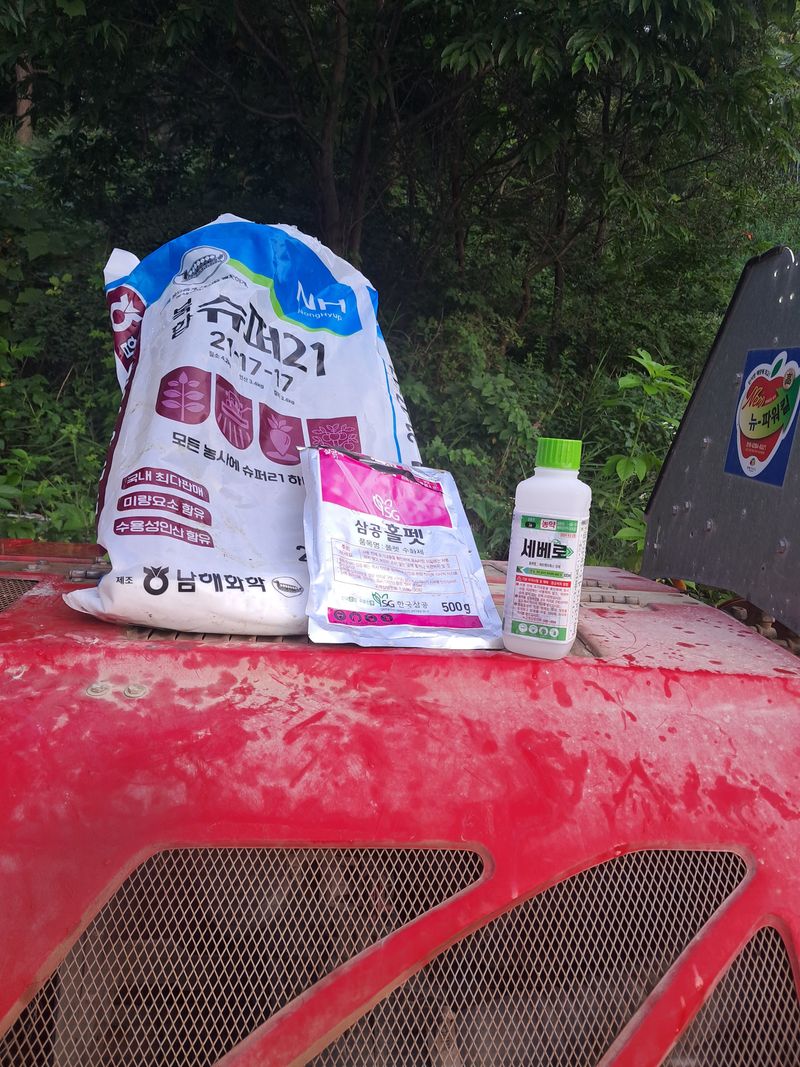 인산가리1.5키로+석회보르도액5키로+물500리터ss기로1105번지살포1104번지물5000리터살포 1097번지나무아래제초작업