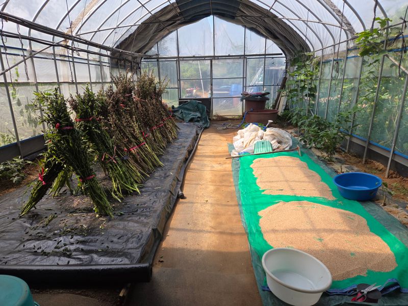 참깨수확 30키로 ᆢ올해는 비가 적게왔고 병충해 피해도 적어서 전년대비 수확량이 많았음 ㆍ두번 더 털어야 하는데 충분히 나눠먹고 남을것 같음ㆍ외대보다는 가지깨가 좋아요