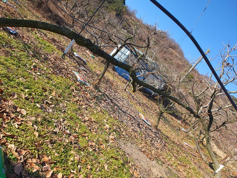 뒤쪽감밭.복숭아밭유기질퇴비120포살포및복합비료2포살포완료