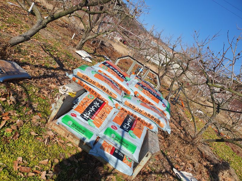 큰감밭유기질퇴비116포살포완료 복합비료1포반살포 양봉모씨감밭유기질퇴비56포배포